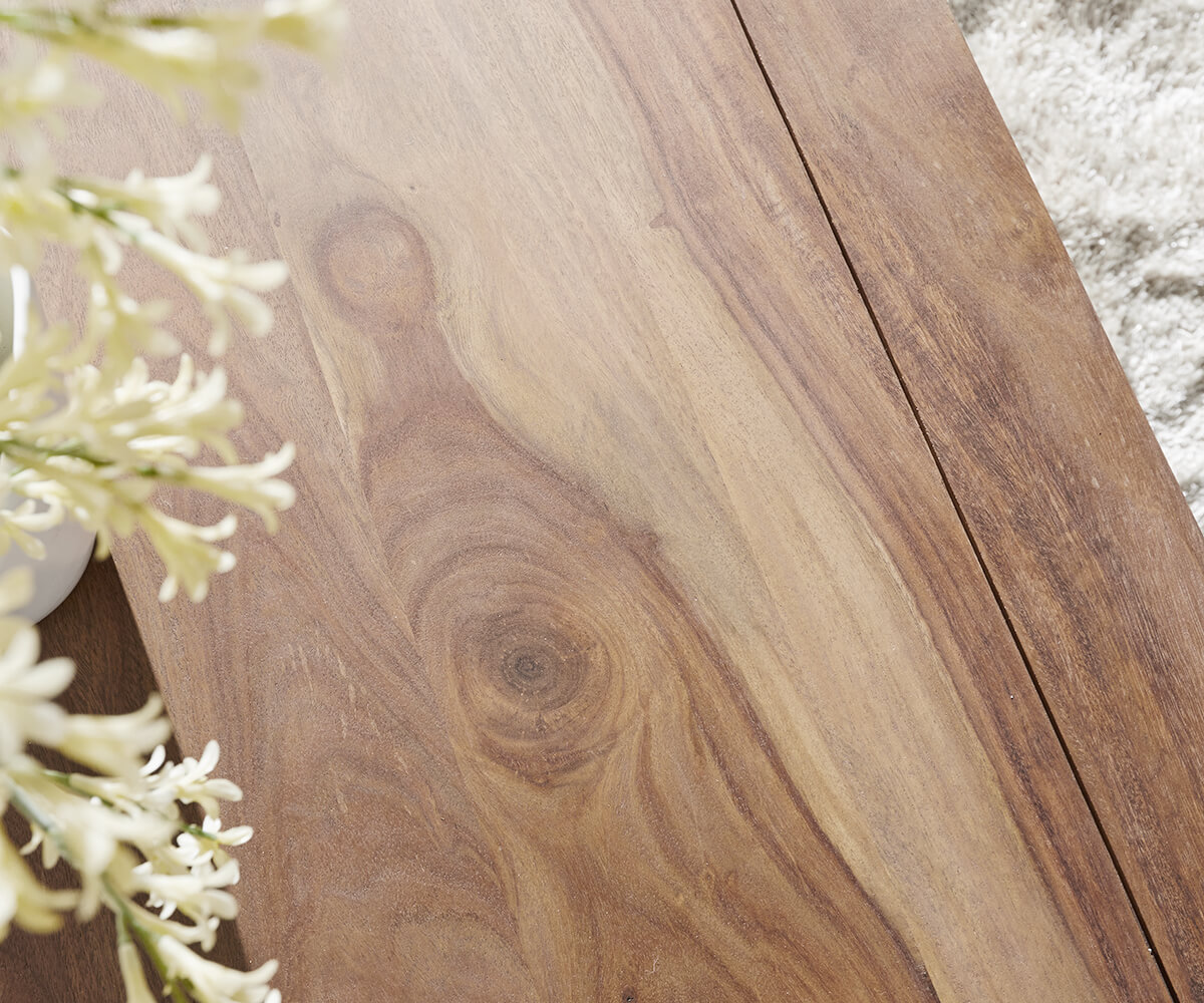 Vytvořte si útulnou atmosféru v pokoji s řadou Indra. Jednotlivé kusy nábytku z masivního dřeva jsou díky svému čistému, nenápadnému designu dokonale tvarované. Komody, vitríny a stoly z této série lze mezi sebou dokonale kombinovat. Naše sheeshamové dřevo je ještě pevnější než dubové, a proto je obzvláště robustní. Bez použití chemikálií lze tento materiál dále ručně zpracovávat. Díky tomu je každý stolek skutečně jedinečný, protože žádné dva povrchy nejsou stejné.