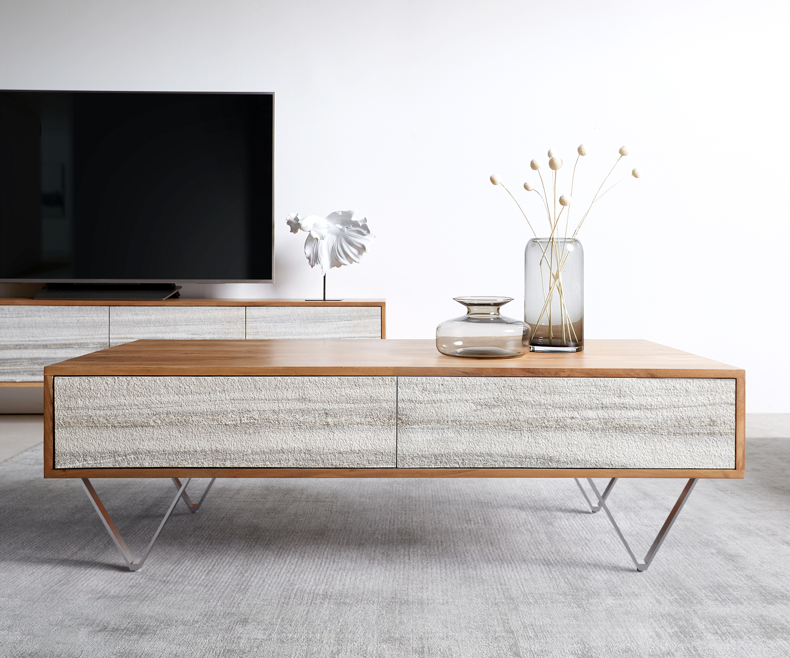 Stylový design ze dřeva a kamene – konferenční stolek Kleo
