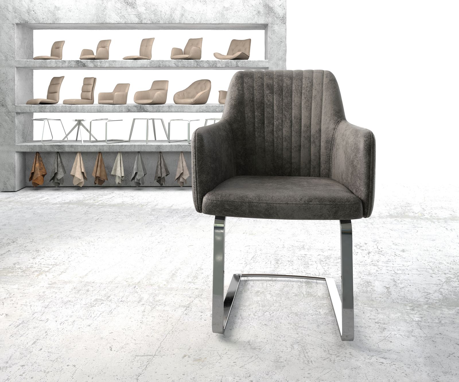 Díky svému klasickému tvaru a průběžným područkám je Greg nejen velmi elegantní, ale také mimořádně pohodlný a nenáročný na záda. Jemné svislé prošívání na opěradle stylově dotváří celkový ušlechtilý dojem této nadčasové kreace židle.