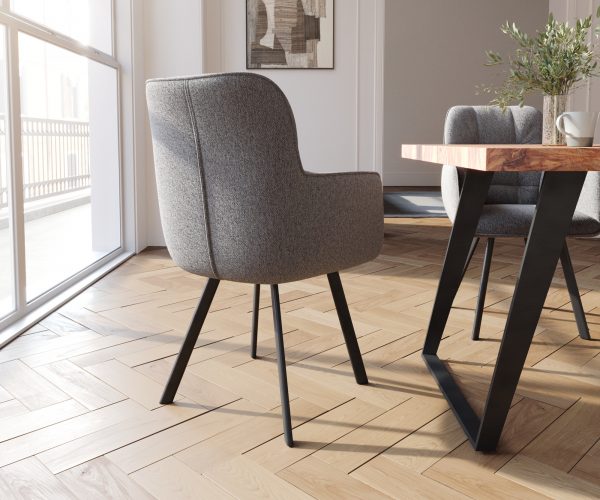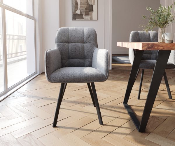 Jídelní židle Juno s područkami s texturovanou látkou světle šedá – systém židlí DELIFE