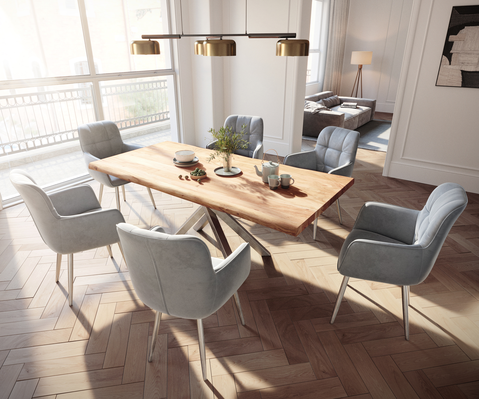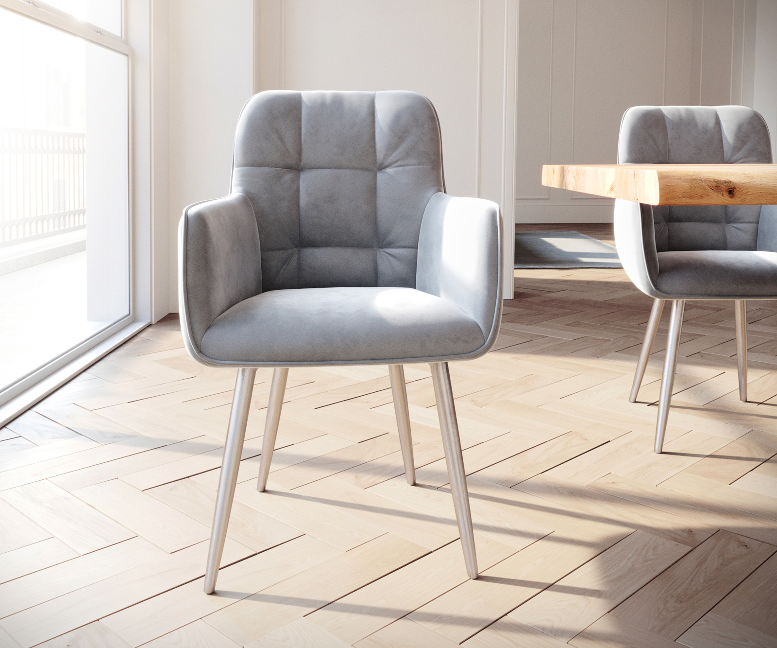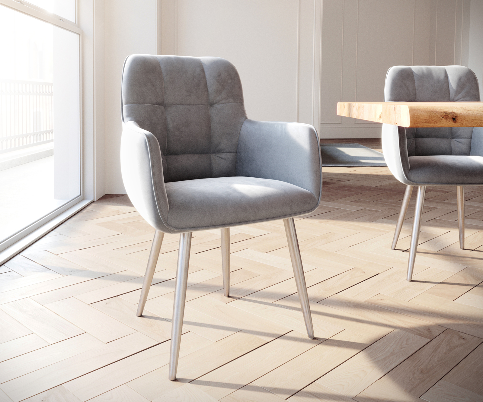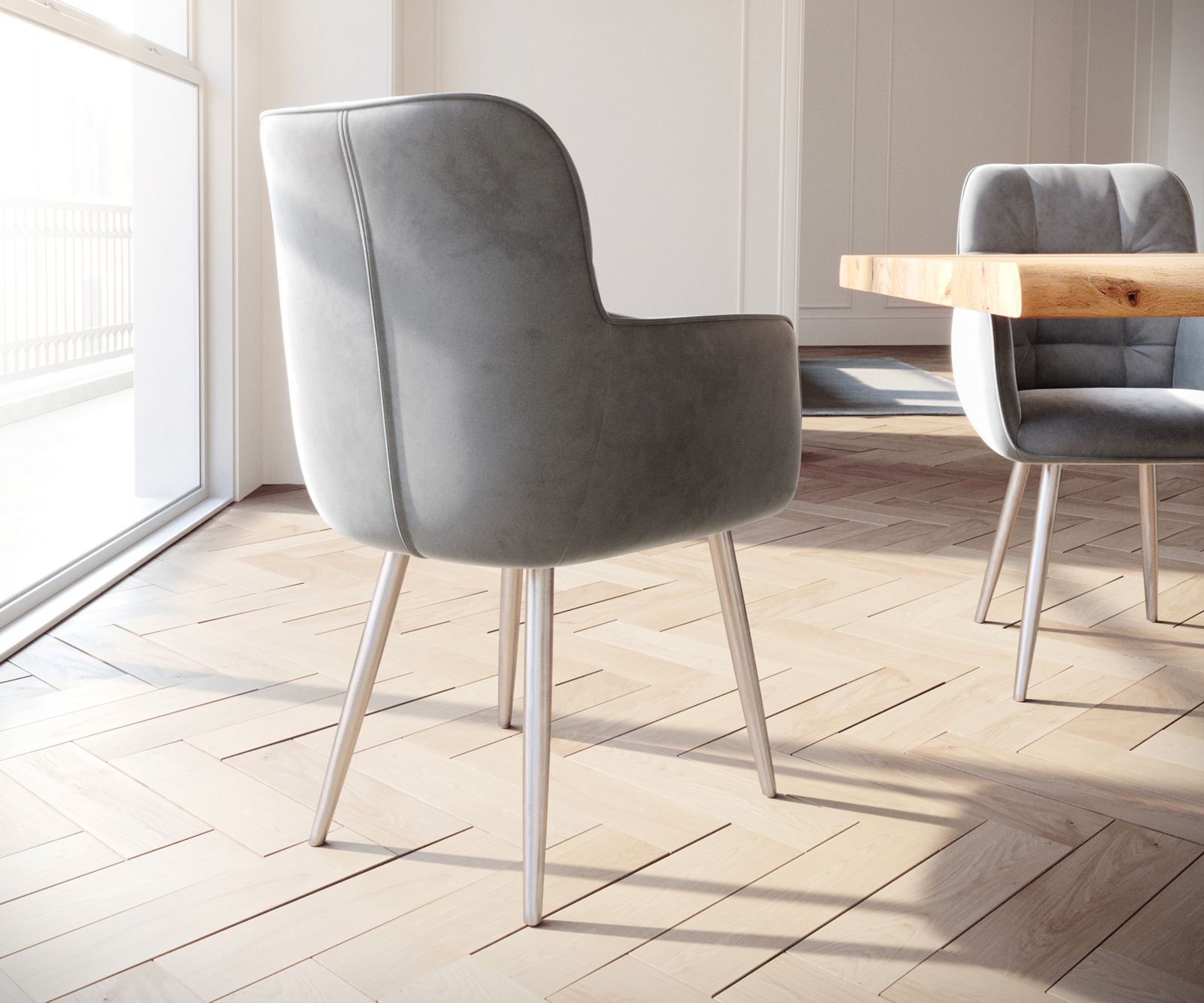 Jídelní židle Juno s područkami sametově šedá – židlový systém DELIFE
