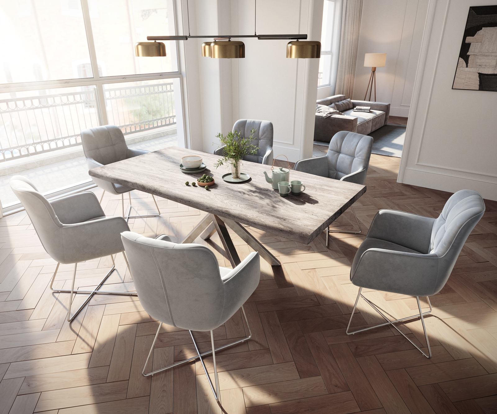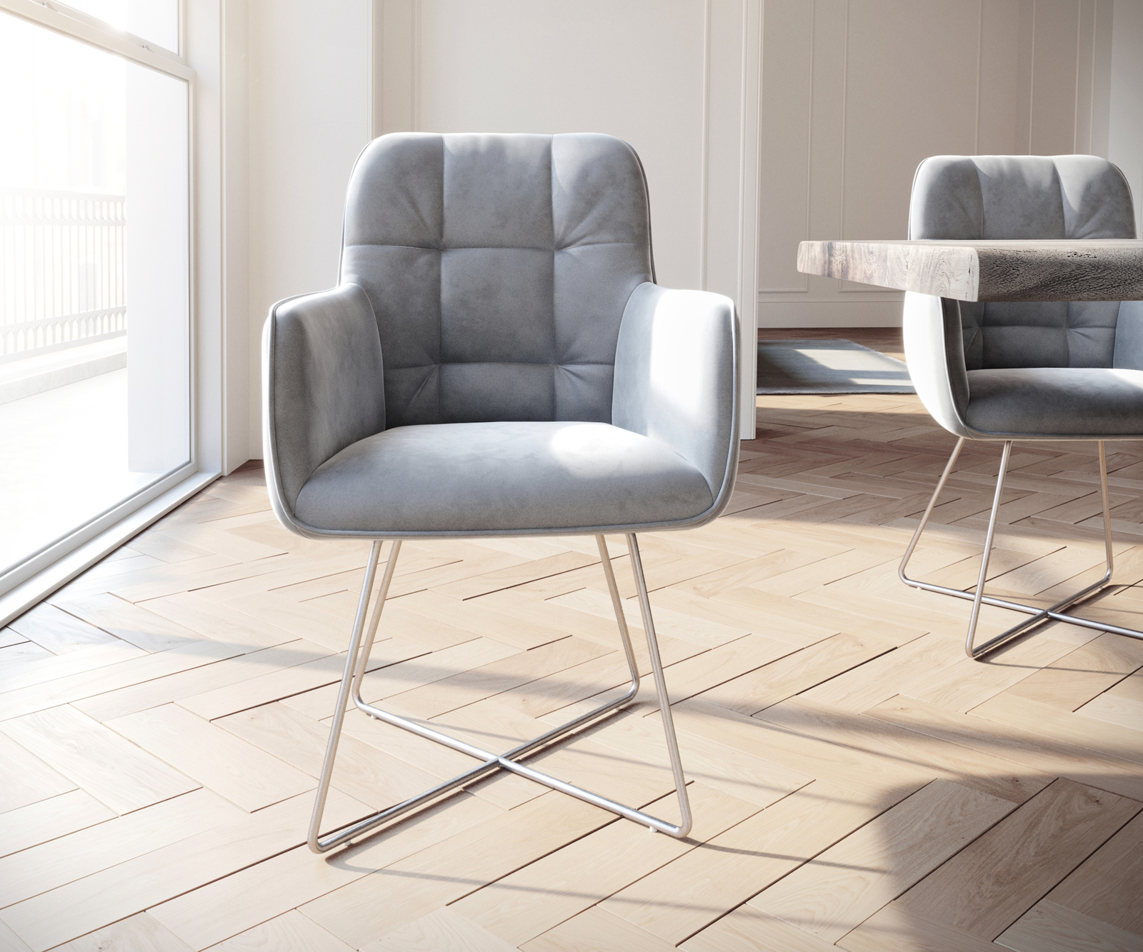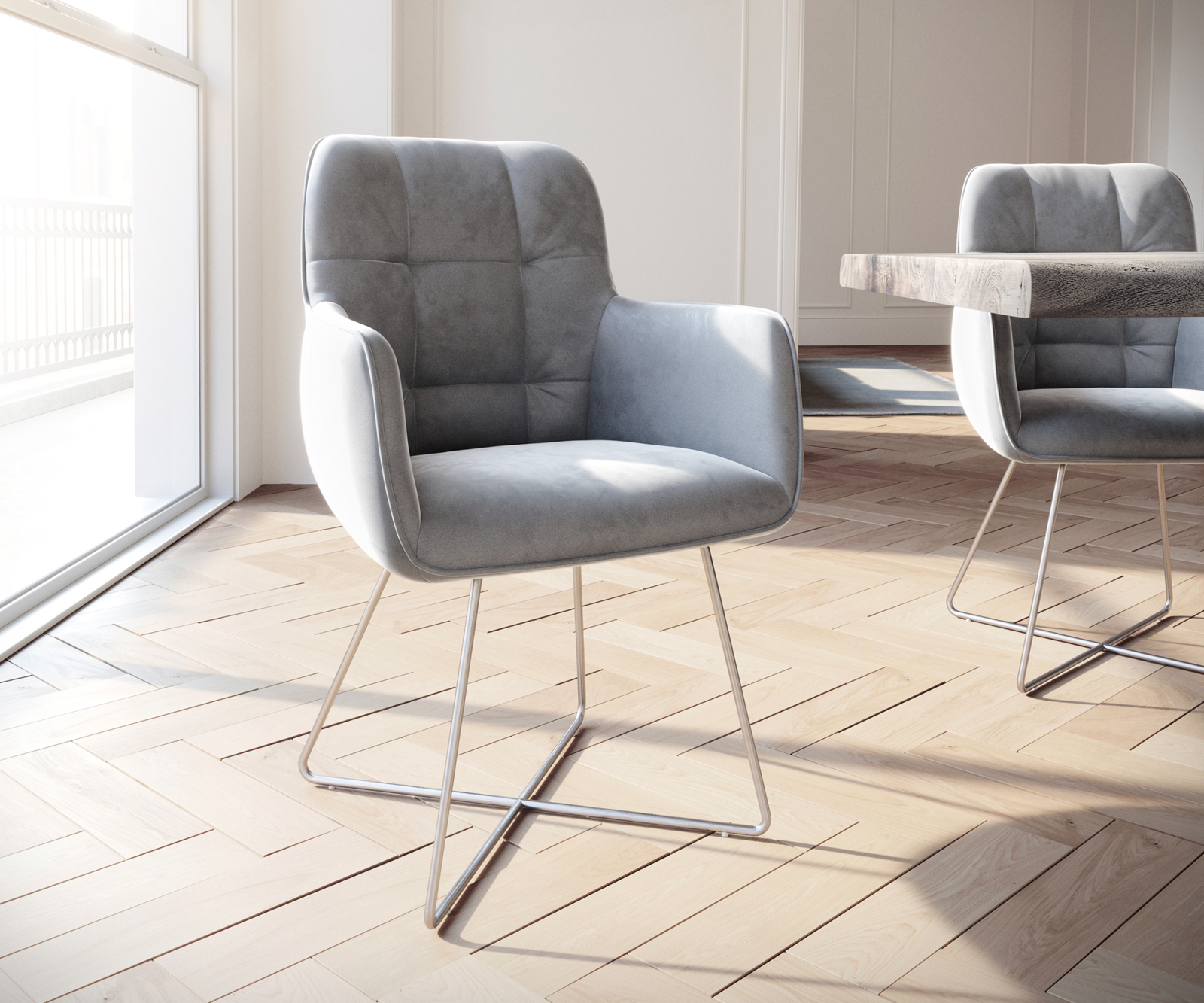 Jídelní židle Juno s područkami sametově šedá – židlový systém DELIFE