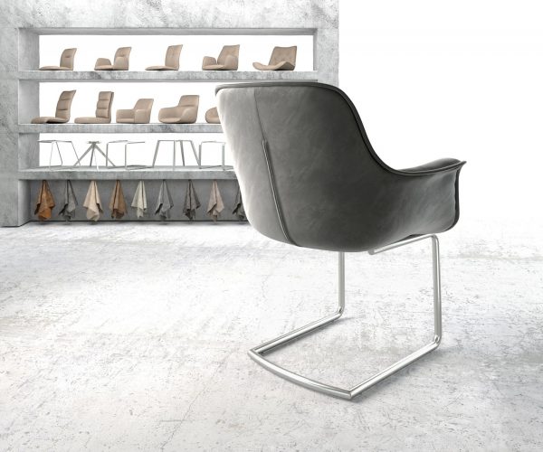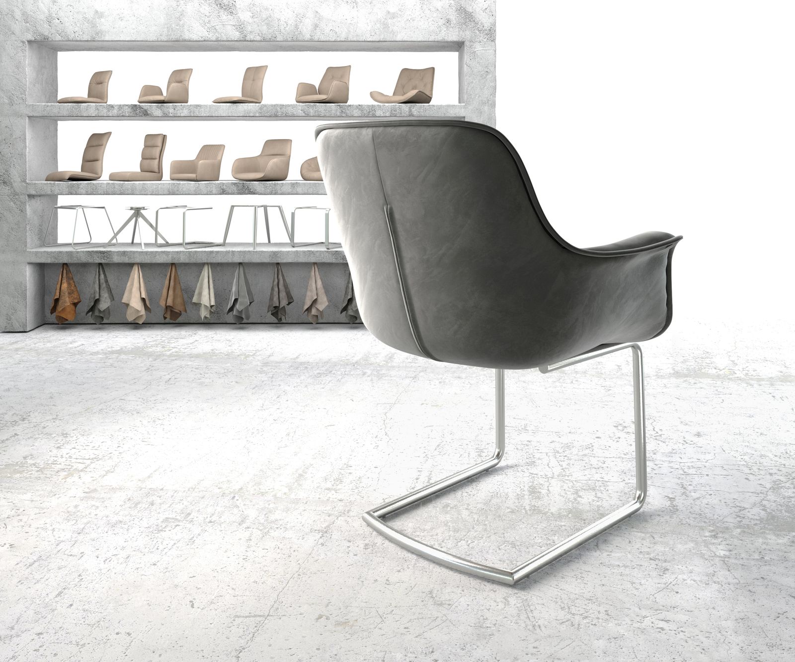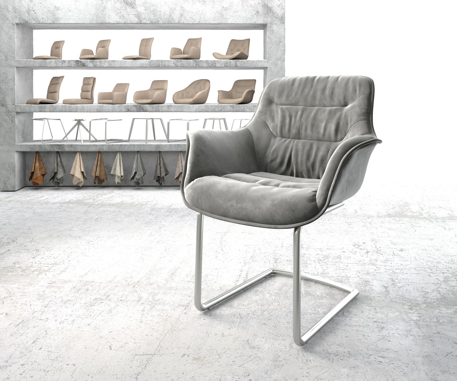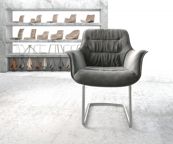 Křeslo Kaira-Flex Šedá Samet Cantilever Round z nerezové oceli