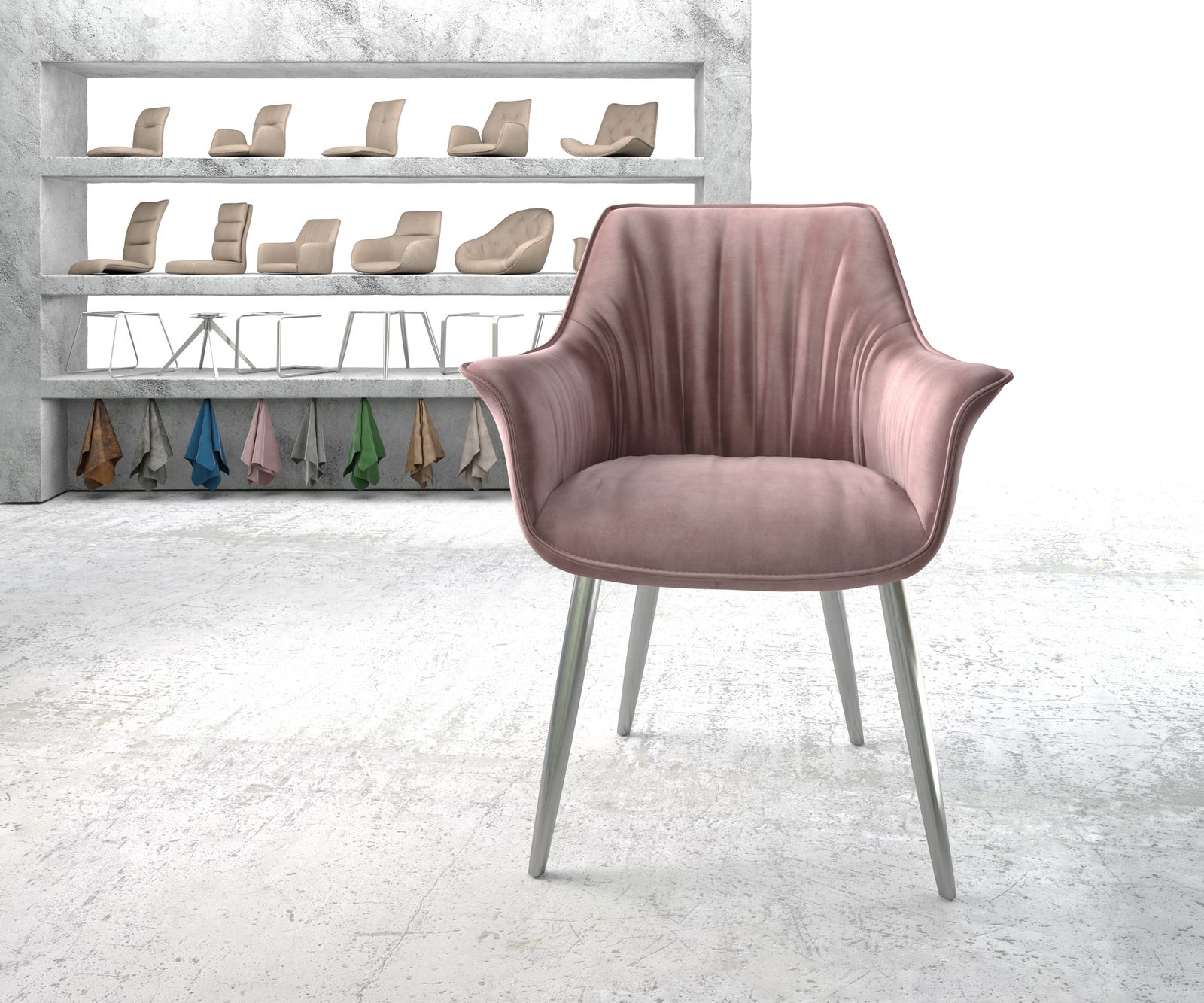 Jídelní židle Keila s područkami velvet rosé – židlový systém DELIFE