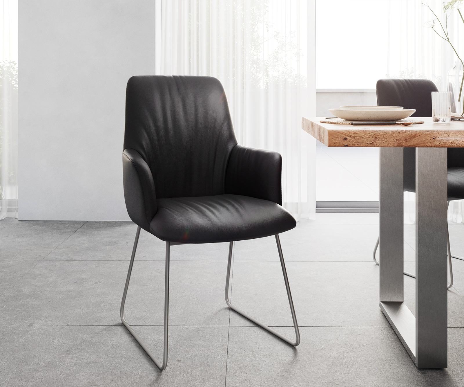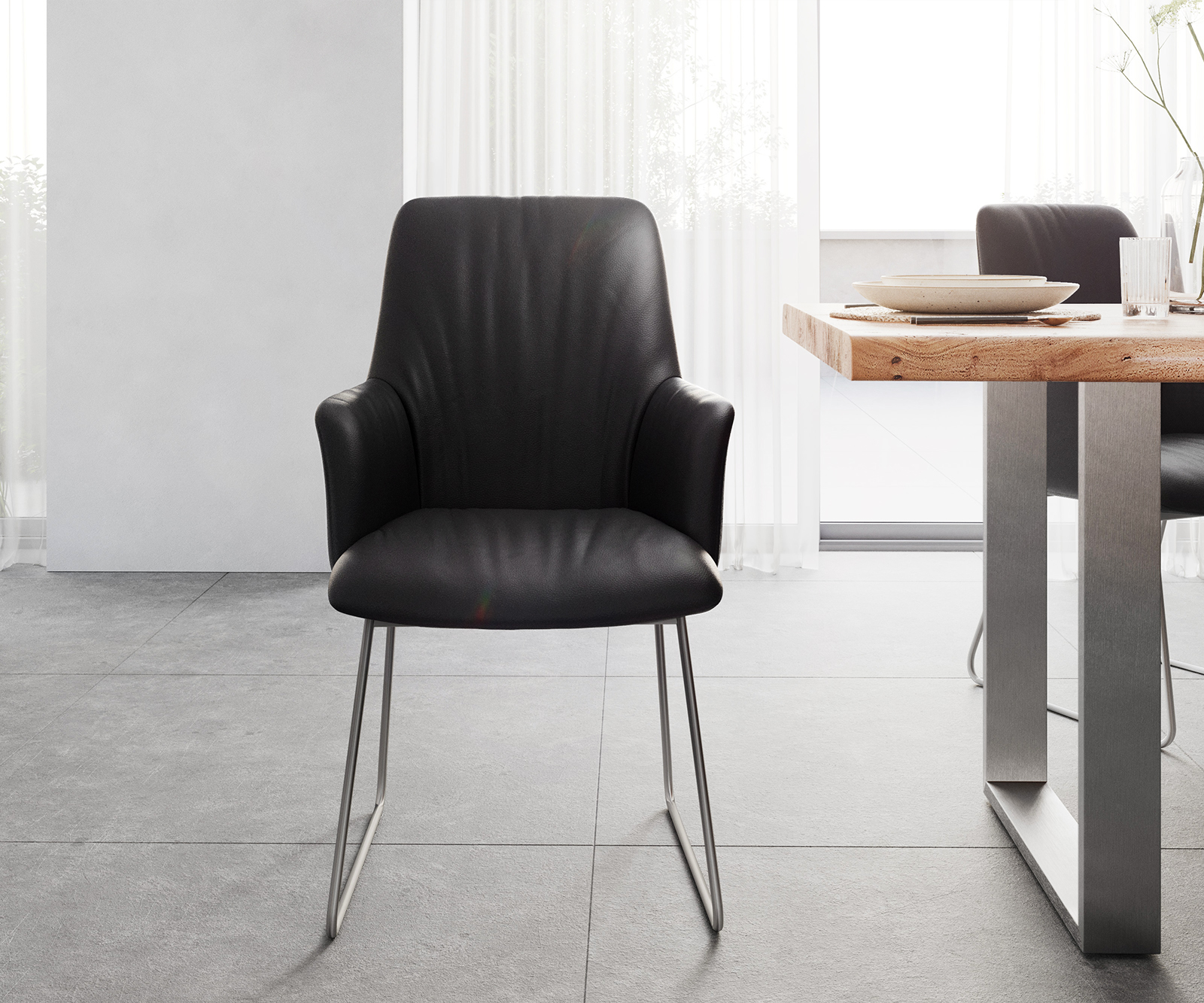 Jídelní židle Willa s područkami z pravé kůže černá – systém židlí DELIFE
