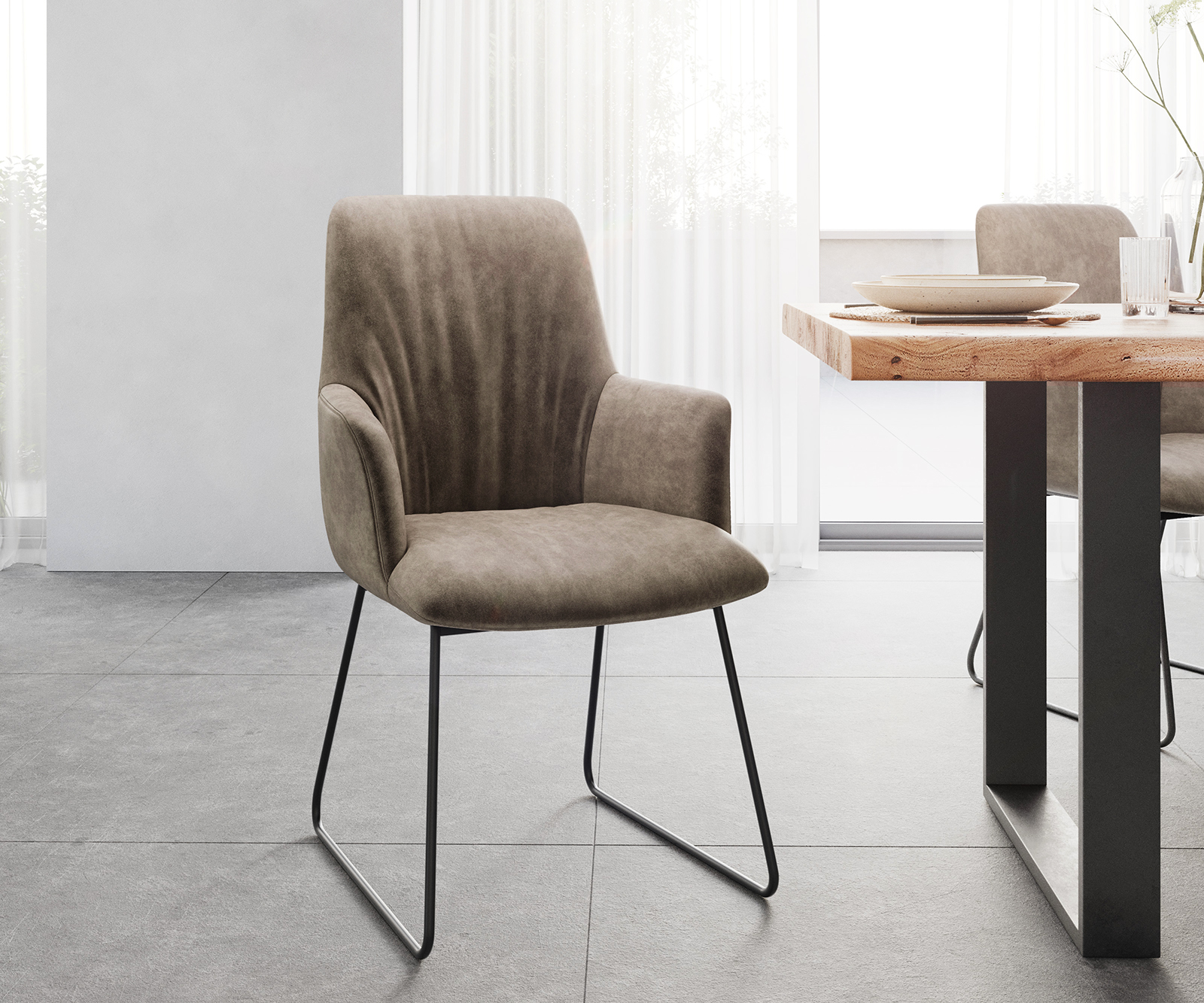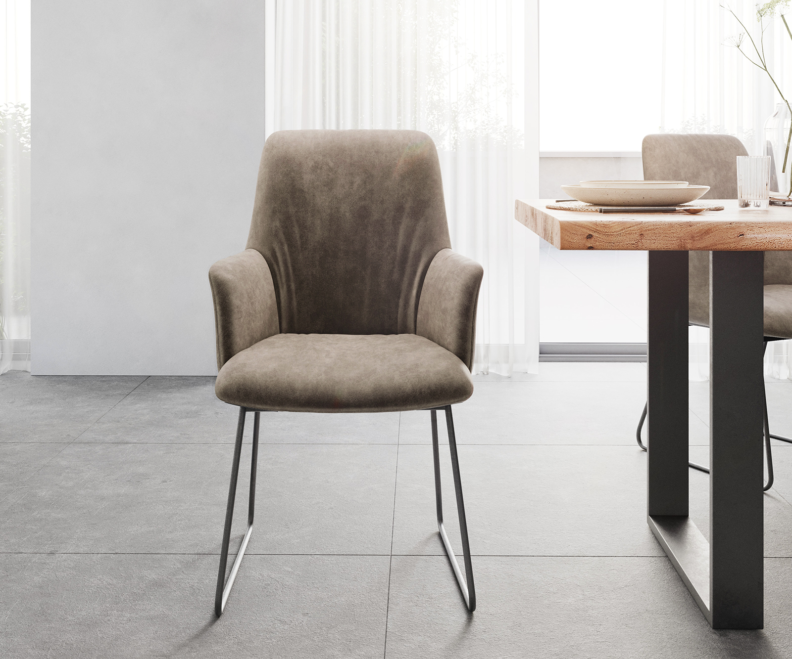 Jídelní židle Willa s područkami z mikrovlákna taupe vintage – systém židlí od DELIFE