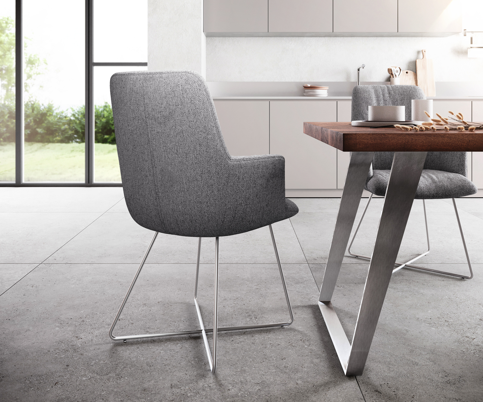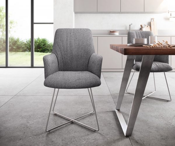 Jídelní židle Willa s područkami s texturovanou látkou světle šedá – systém židlí DELIFE