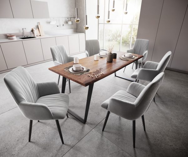 Jídelní židle Willa s područkami sametově šedá – systém židlí DELIFE