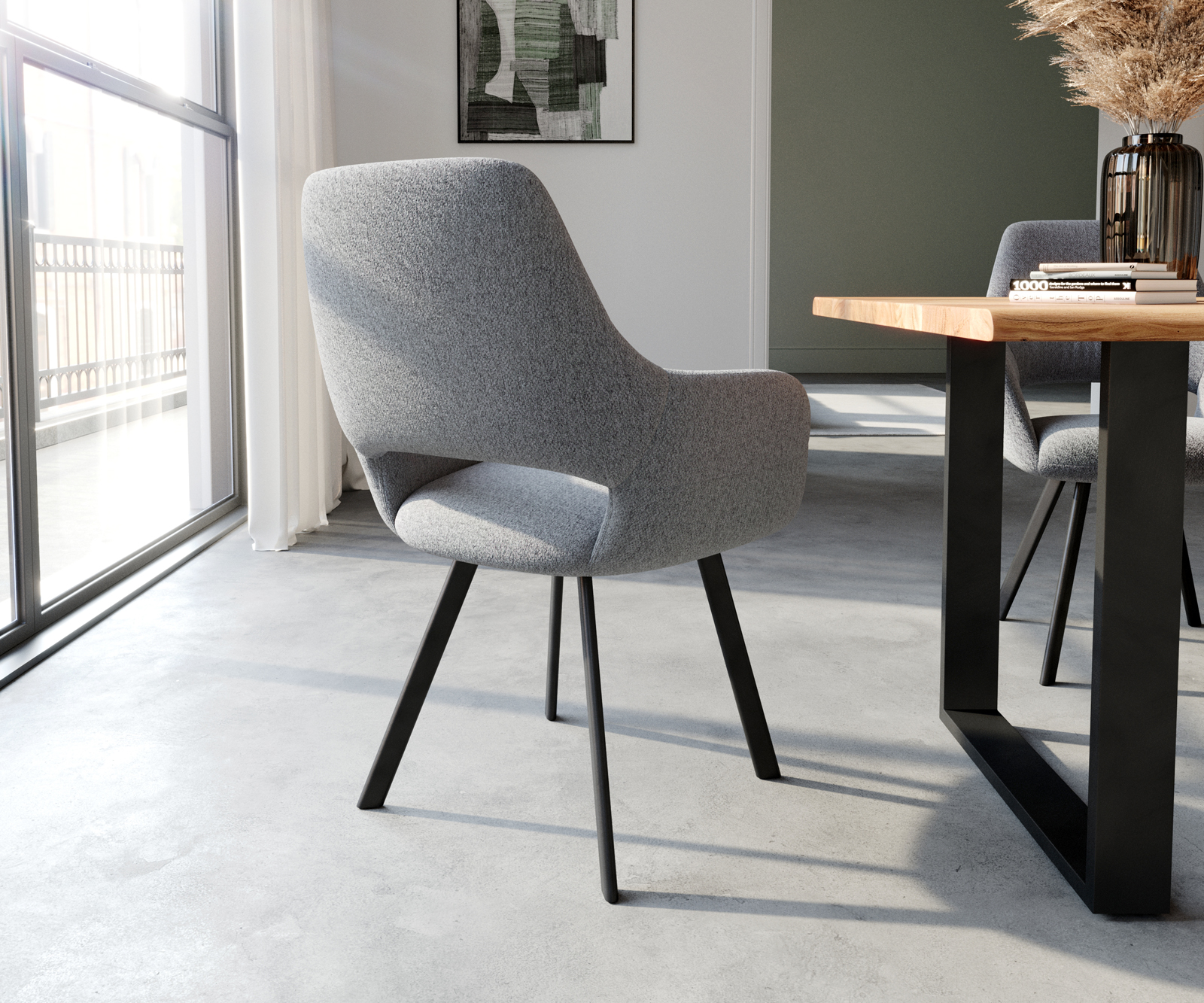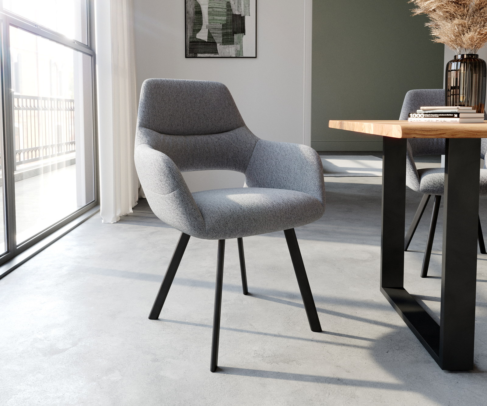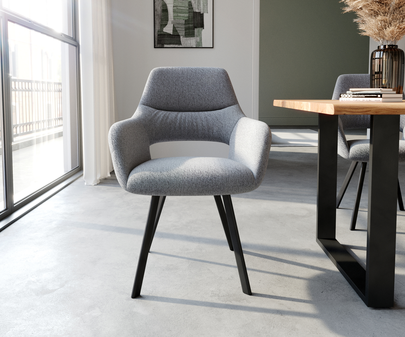 Jídelní židle Yago s područkami z texturované látky světle šedá – židlový systém DELIFE