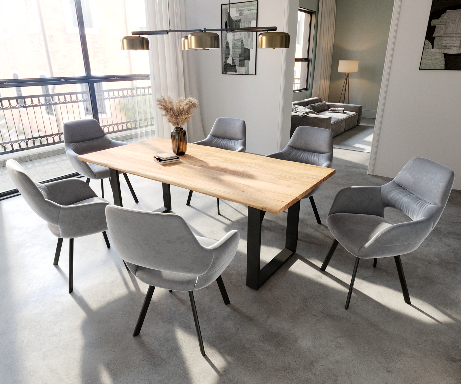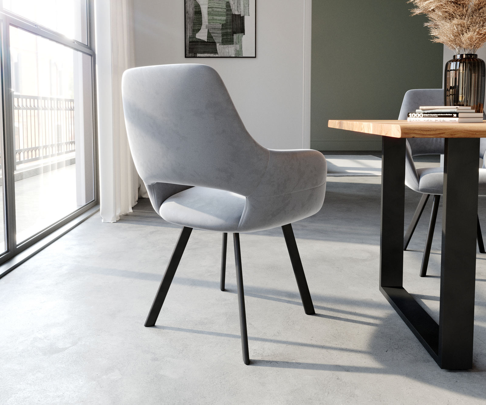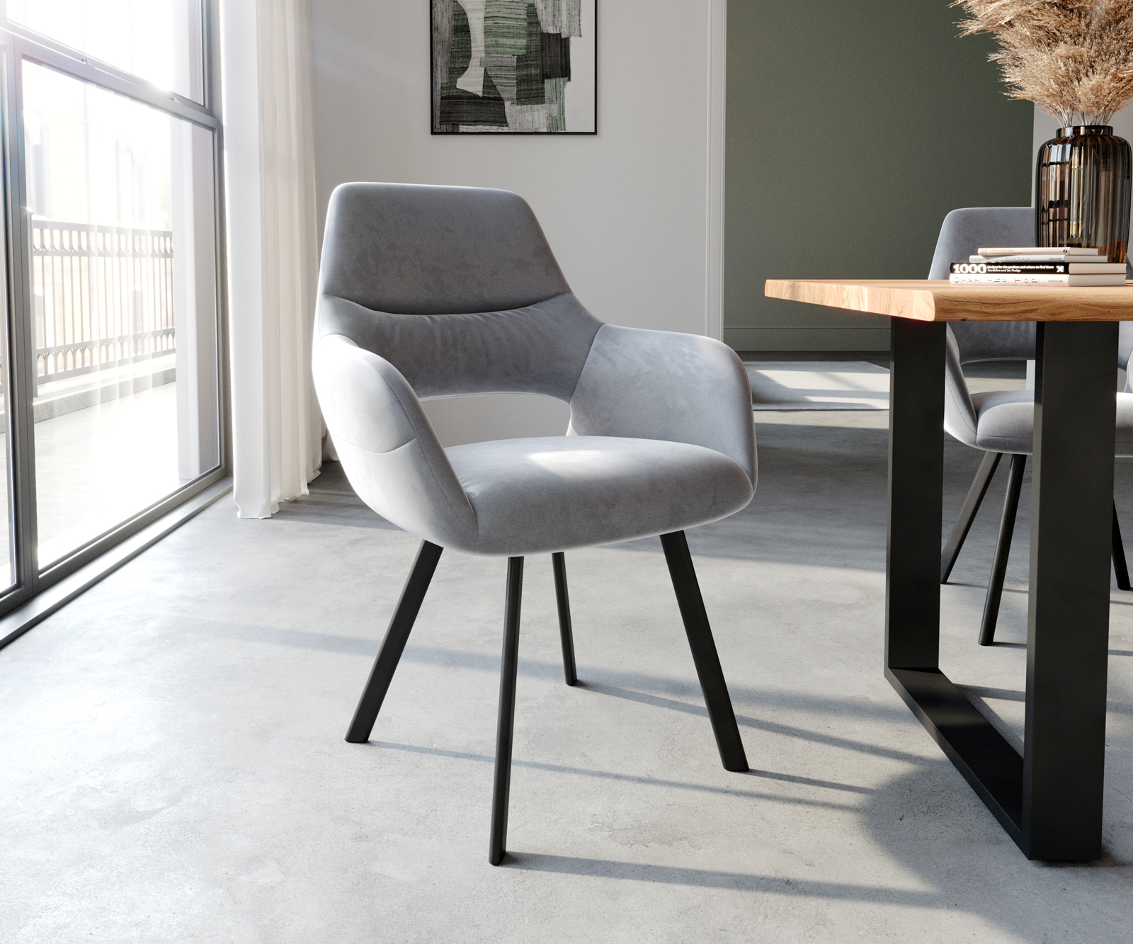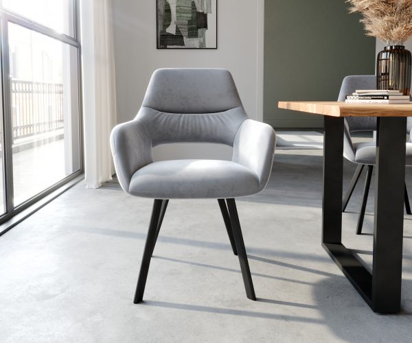 Jídelní židle Yago s područkami sametově šedá – židlový systém DELIFE