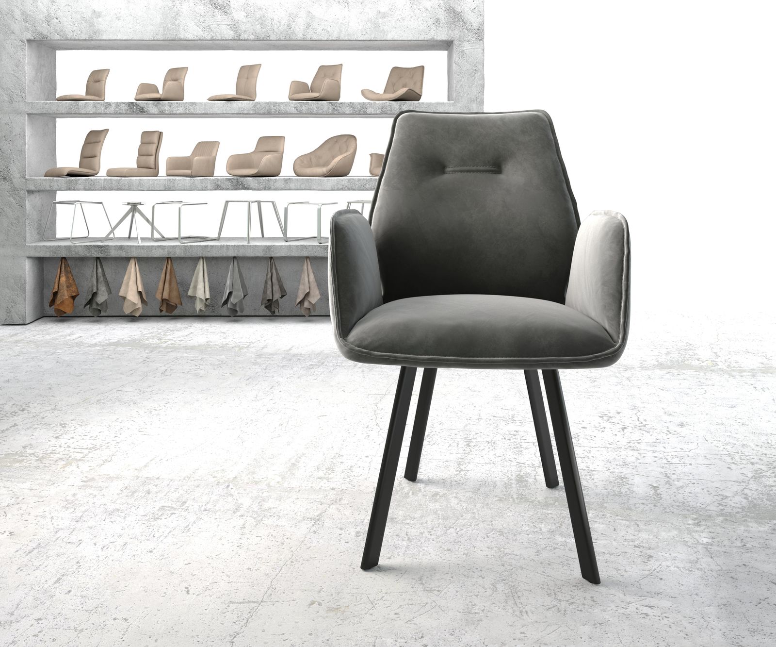 Jídelní židle Zoa velvet šedá – systém židlí DELIFE