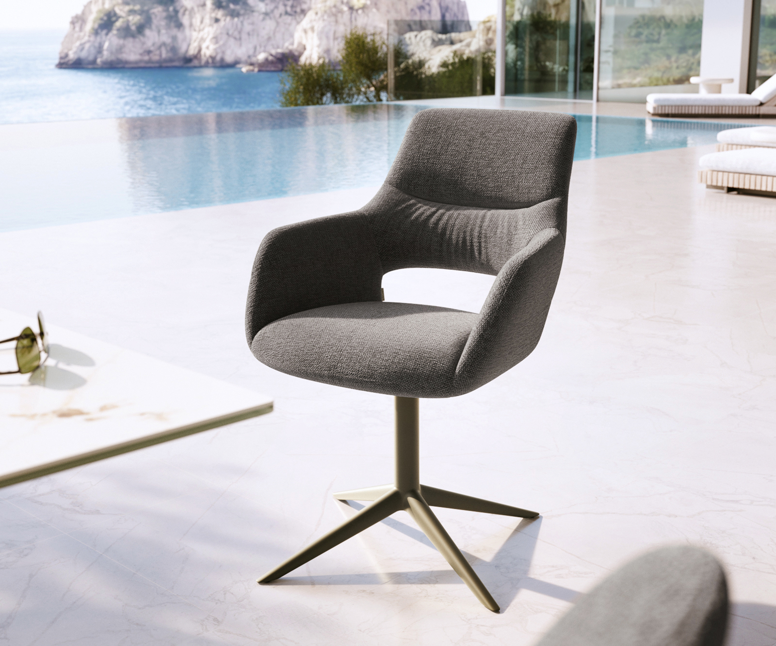 A Yago-Flex az otthon érzését viszi ki a szabadba. Áttört háttámlájával, finoman ívelt karfáival és elegáns díszvarrásával könnyed, elegáns és csodálatosan otthonos hatást kelt. A vízáteresztő komforthab támogatja a kültéri használatot, így stílusos választás teraszra, erkélyre és beltéri térbe egyaránt. Így születik meg egy kültéri étkezőszék, amely bármilyen környezetben különösen harmonikusan hat.