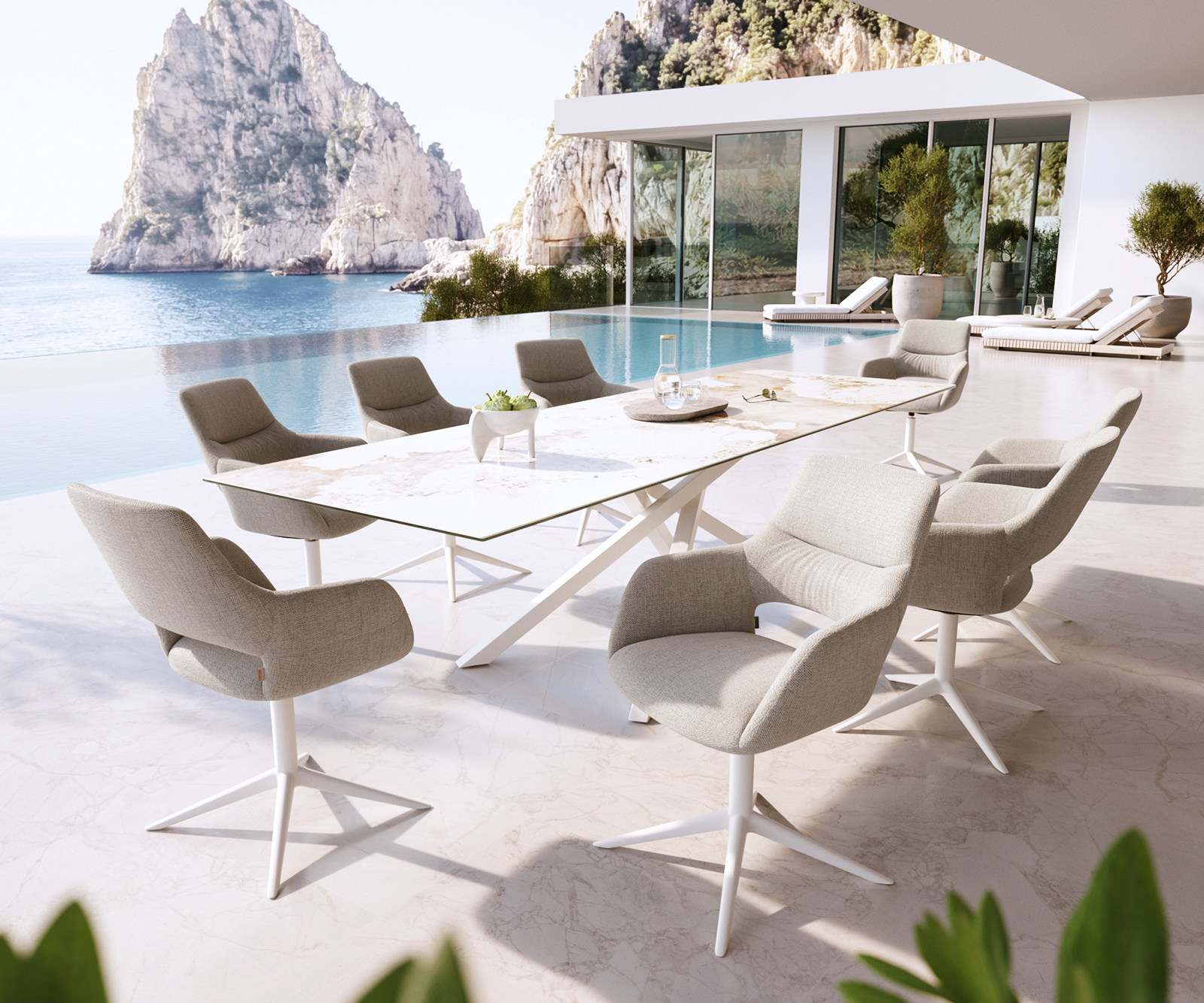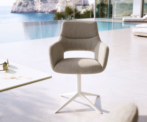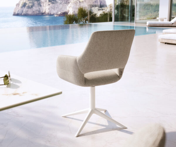 A Yago-Flex a beltéri otthonosságot viszi ki a szabadba. Áttört háttámlájával, finoman ívelt karfáival és precíz díszvarrásával könnyed, elegáns és csodálatosan otthonos hatást kelt. A vízáteresztő komforthab támogatja a kültéri használatot, így stílusos választás teraszra, erkélyre és beltéri térbe egyaránt. Így jön létre egy kültéri étkezőszék, amely bármilyen környezetben kivételesen harmonikusan mutat.