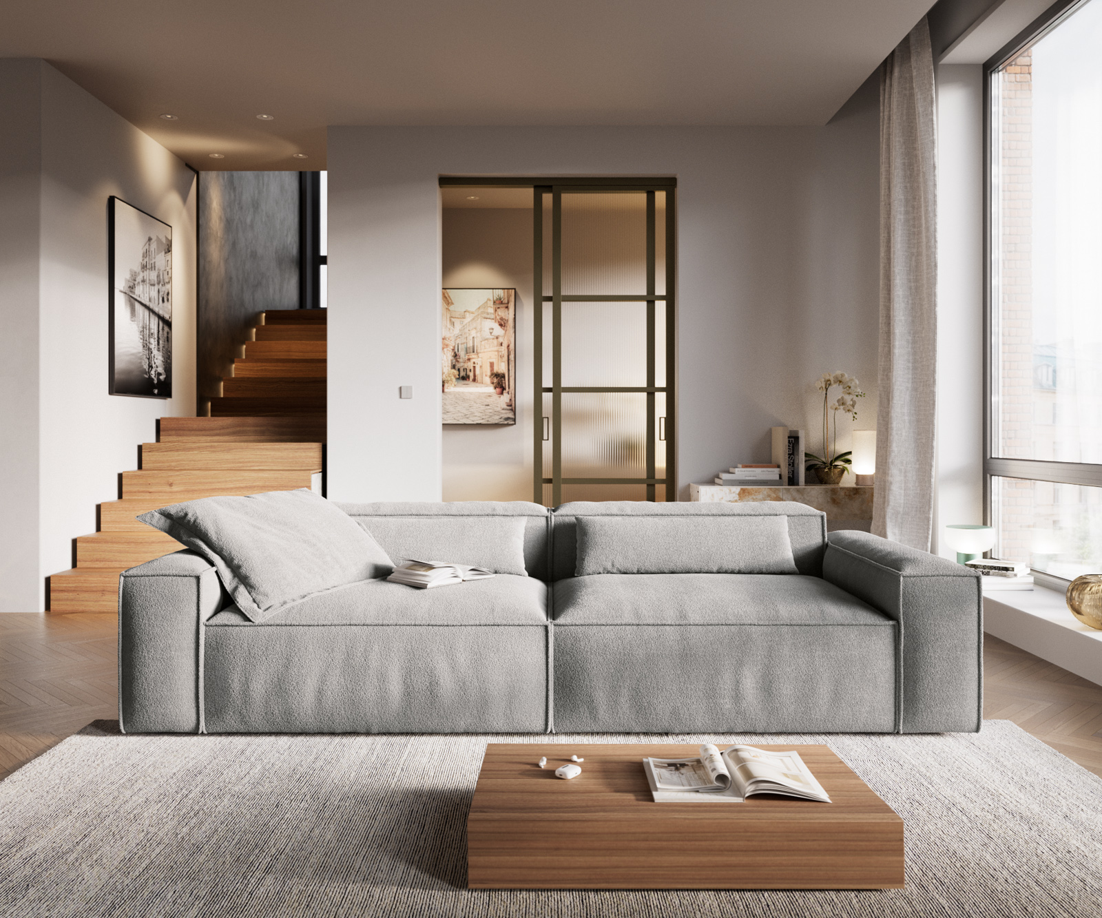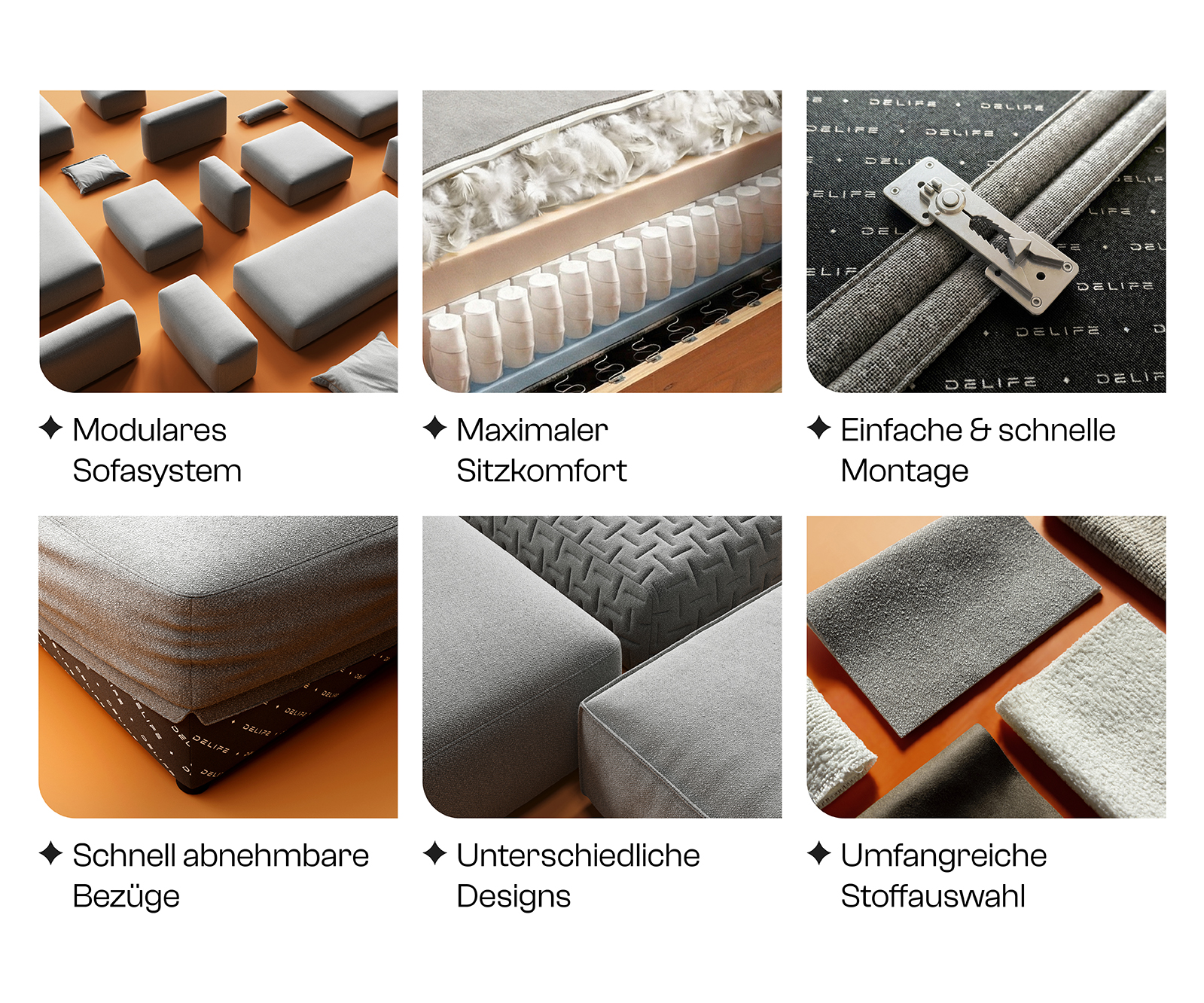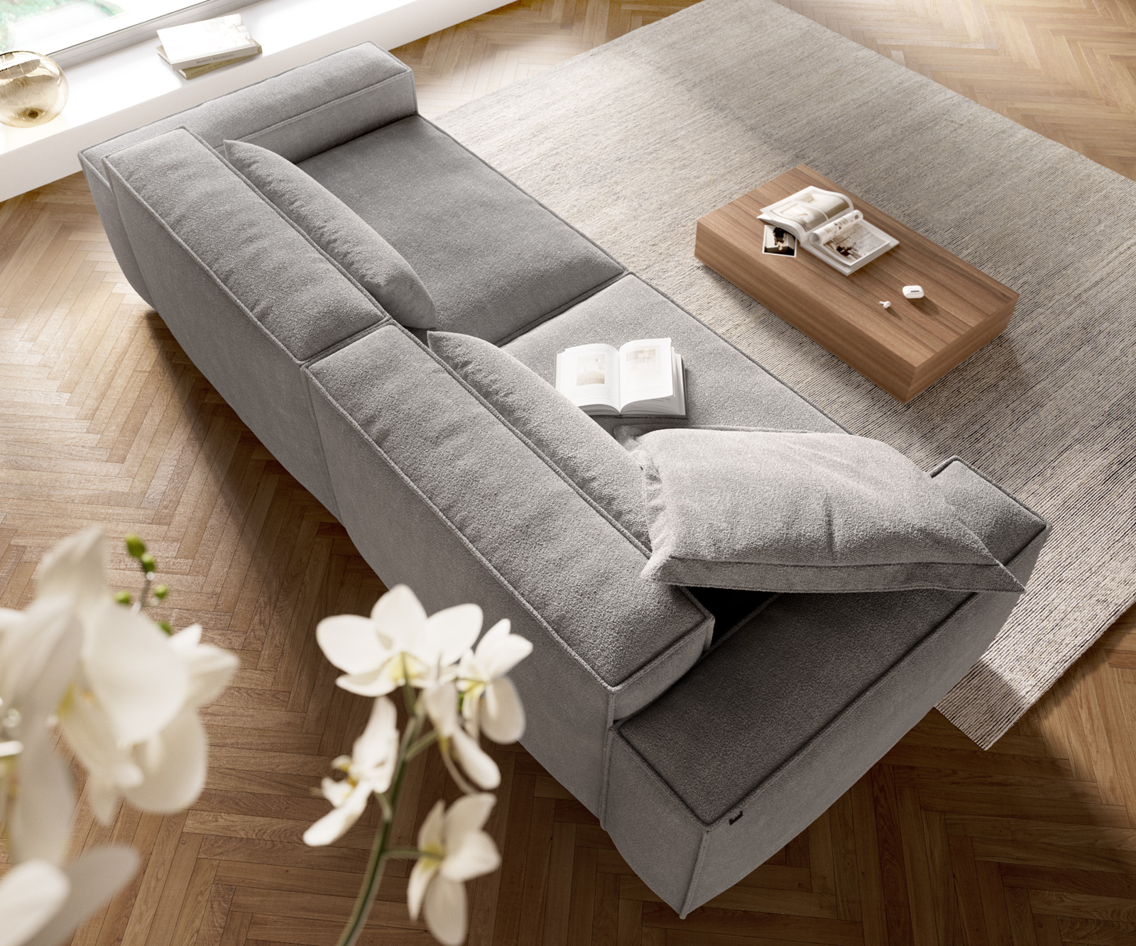 A moduláris koncepció teljes szabadságot ad. Bármikor bővítheted a lakóteret, új modulokat adhatsz hozzá, vagy más designokkal – például Kappnaht vagy Kedernaht – kombinálhatod. A huzatok levehetők és szükség esetén utánrendelhetők. Így kanapéd hosszú ideig aktuális marad, könnyedén alkalmazkodik stílusodhoz, és egyúttal a fenntarthatóság jegyében áll.