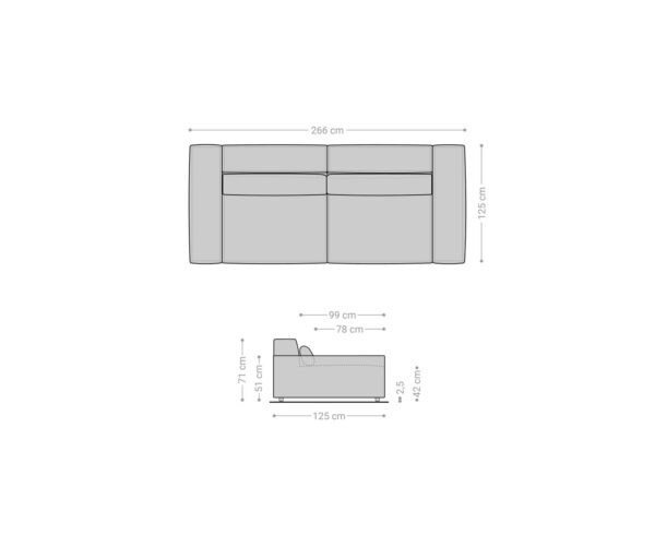 - Méretek kb.: Sz266 x Mé125 x M71 cm