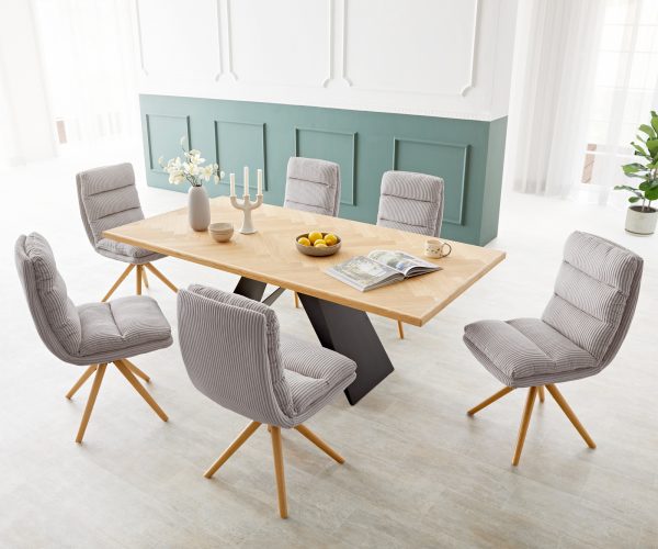 Moderní křížový rám s kulatými nohami je inspirován módním skandinávským stylem a dodává každé jídelní židli Flex přirozeně harmonický vzhled. Rám lze otočit až o 180 stupňů a má praktickou funkci zpětného chodu.