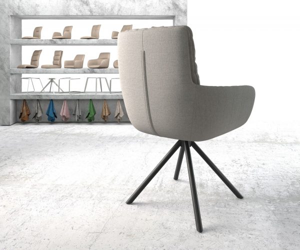 Moderní křížový rám působí příjemně harmonicky díky čtyřem kulatým nohám, které zajišťují mimořádně bezpečné postavení. Rám s funkcí vrácení lze otočit až o 180 stupňů. Díky této praktické funkci neztratíte z dohledu žádného hosta u stolu.