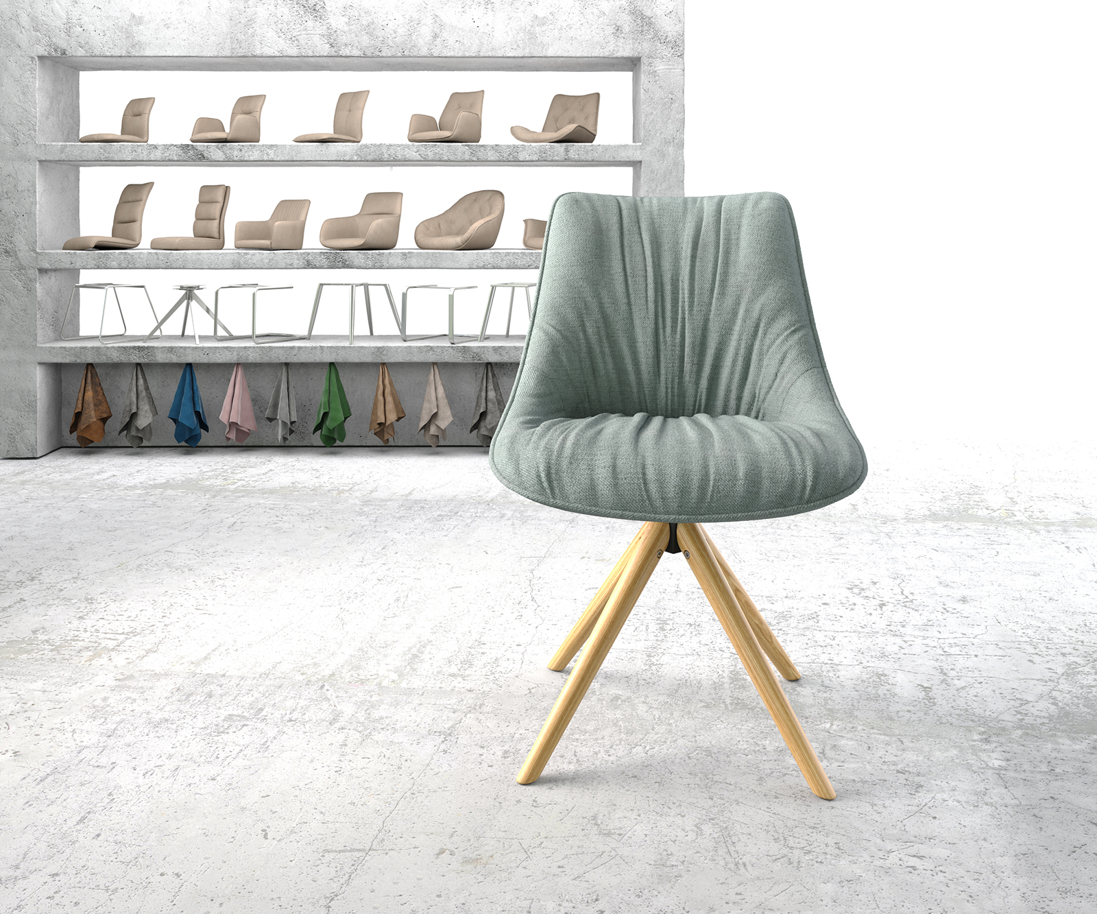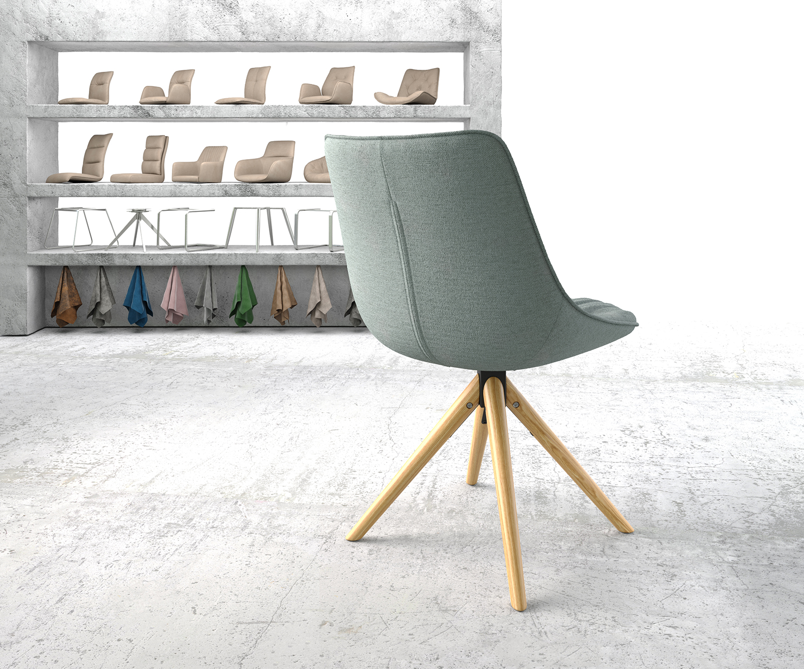 Moderní křížový rám s kulatými nožkami je inspirován módním skandinávským stylem a dodává každé jídelní židli Flex přirozeně harmonický vzhled. Rám lze otočit až o 180 stupňů a má praktickou funkci zpětného chodu.