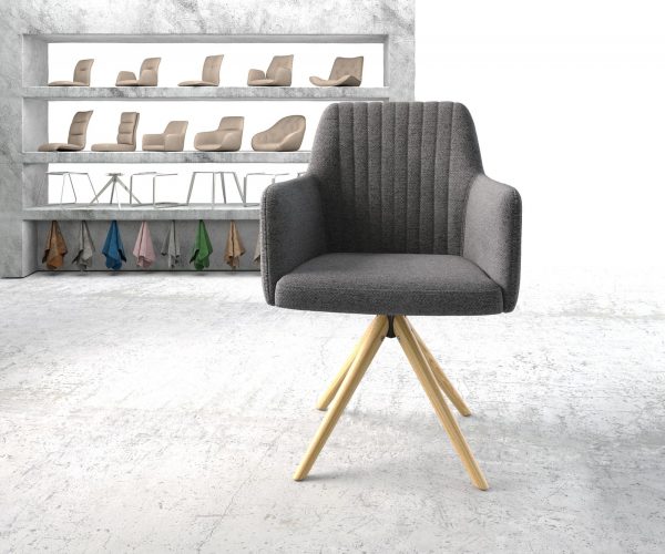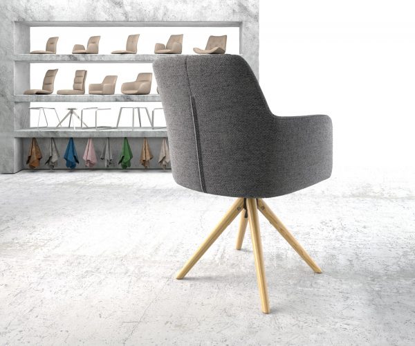 Moderní křížový rám s kulatými nožkami je inspirován módním skandinávským stylem a dodává každé jídelní židli Flex přirozeně harmonický vzhled. Rám lze otočit až o 180 stupňů a má praktickou funkci zpětného chodu.