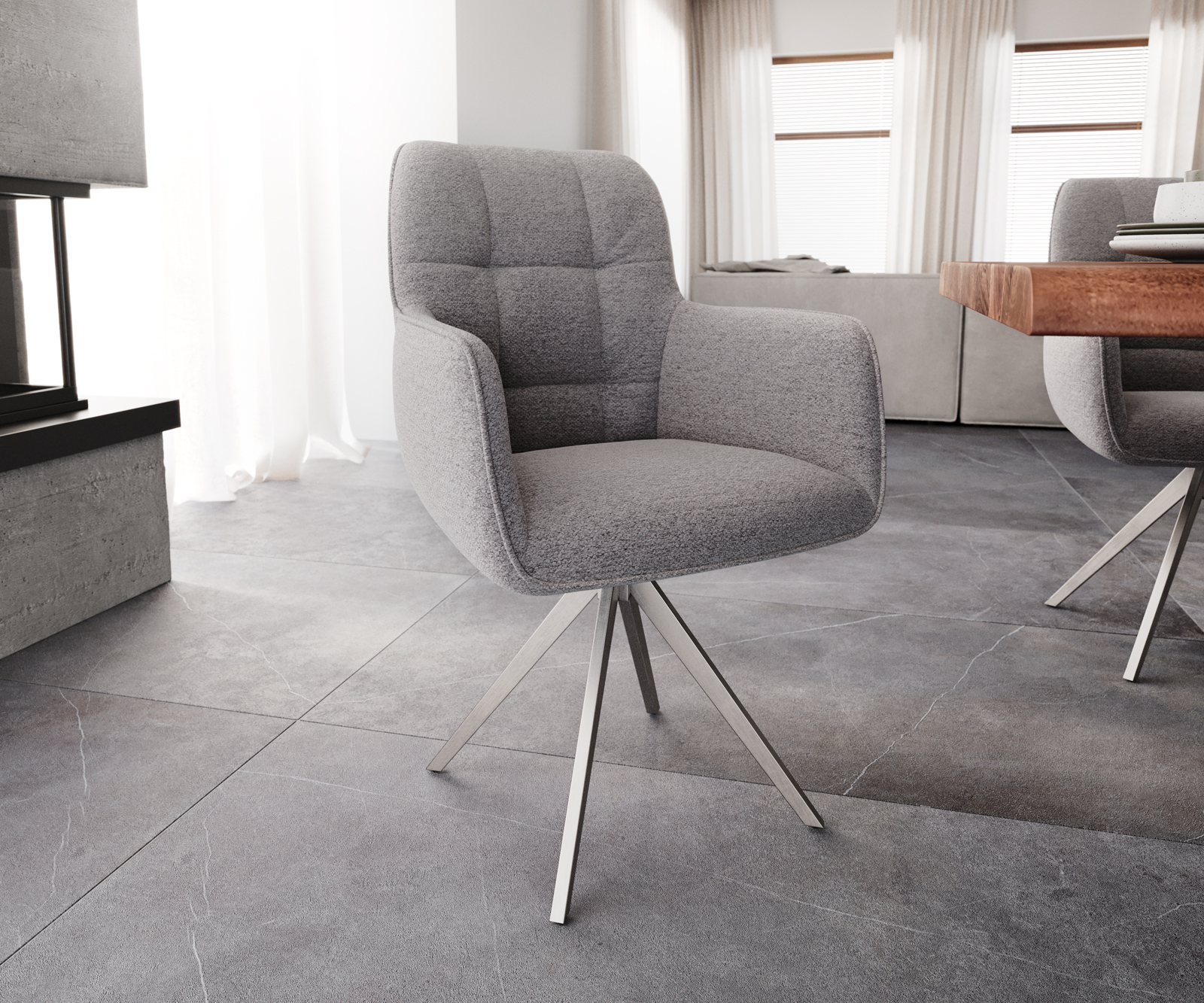 Jídelní židle Juno s područkami s texturovanou látkou světle šedá – židlový systém DELIFE