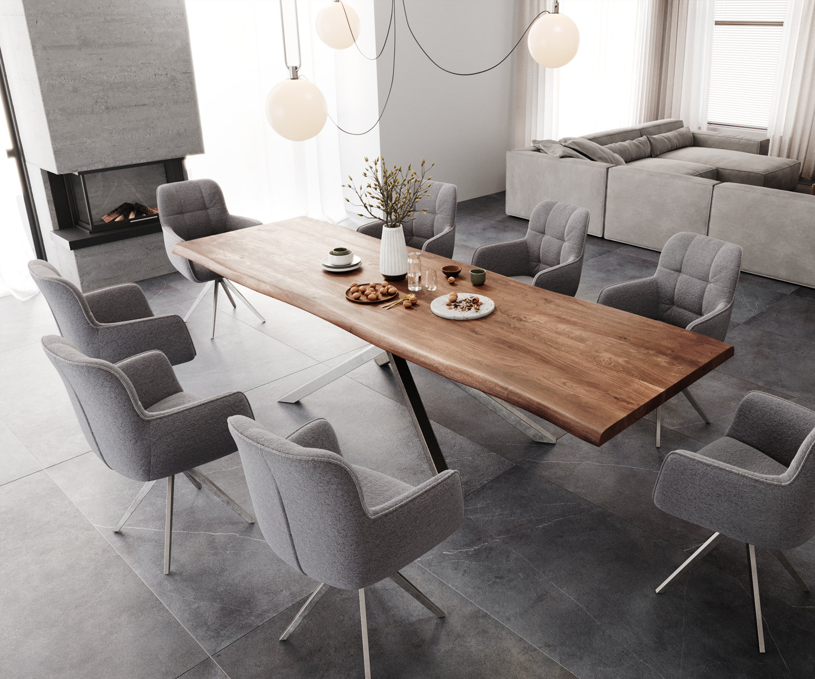 Široký křížový rám lze otáčet o 360 stupňů a zajišťuje bezpečné postavení a moderní vzhled.