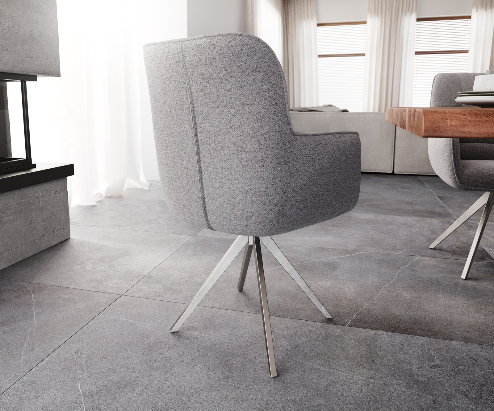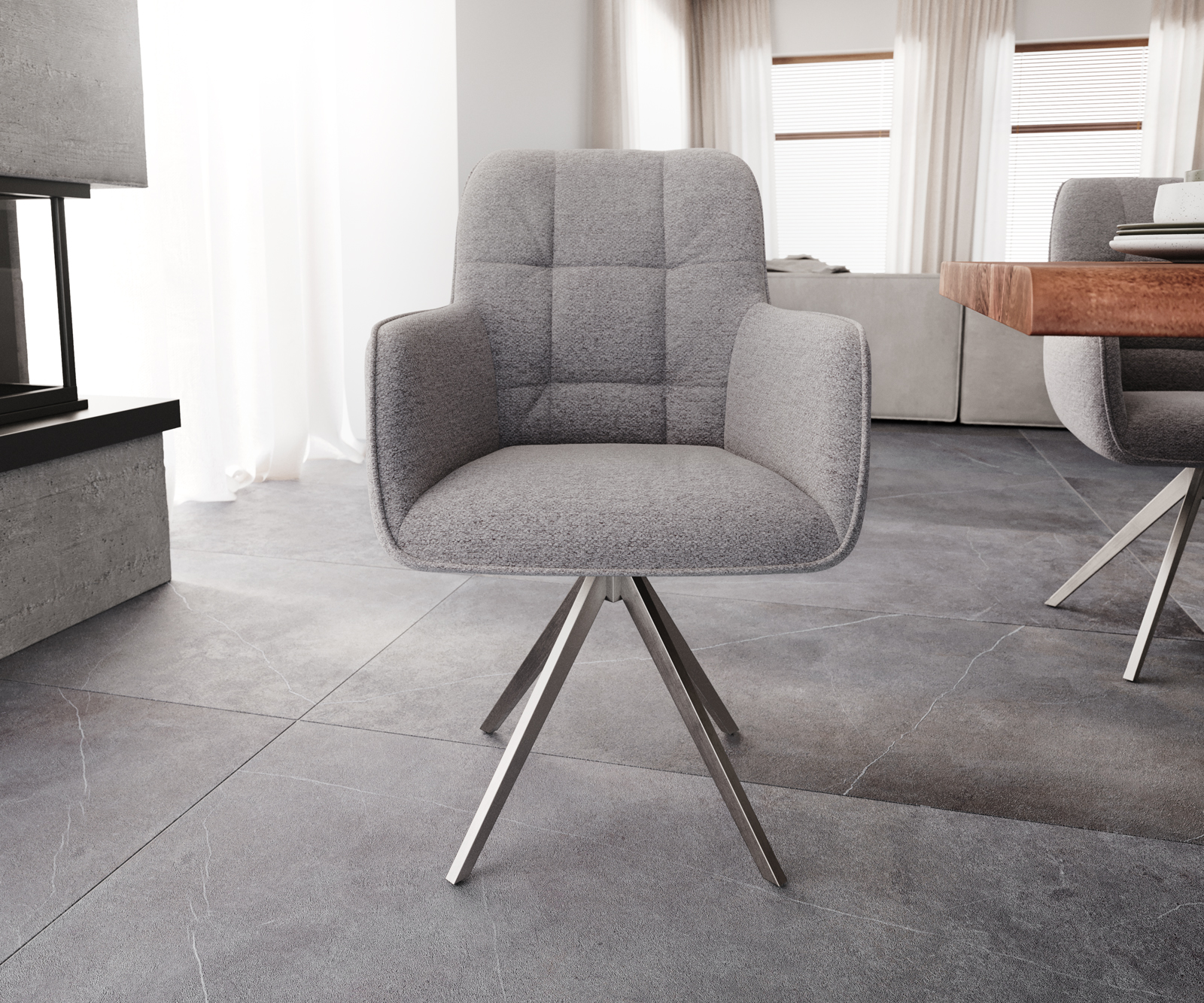 Otočná židle Juno-Flex s područkami Světle šedá texturovaná tkanina Křížová základna široká Nerezová ocel Otočná o 360°