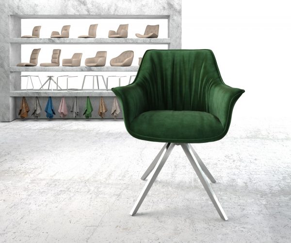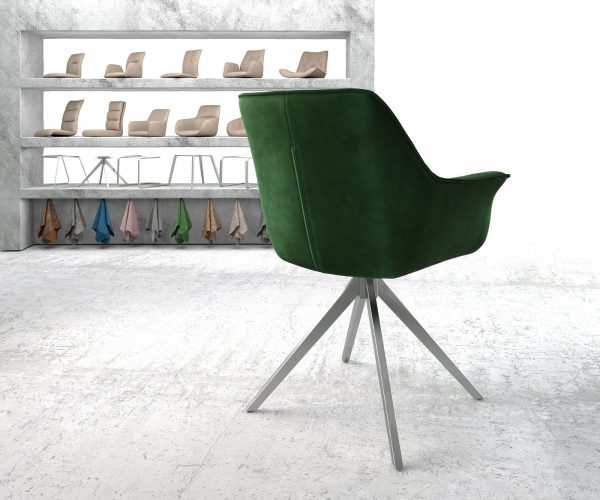 Otočná židle Keila-Flex s područkou samet zelený křížová podnož hranatá otočná z nerezové oceli