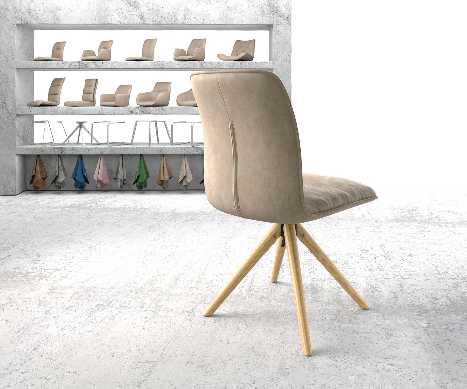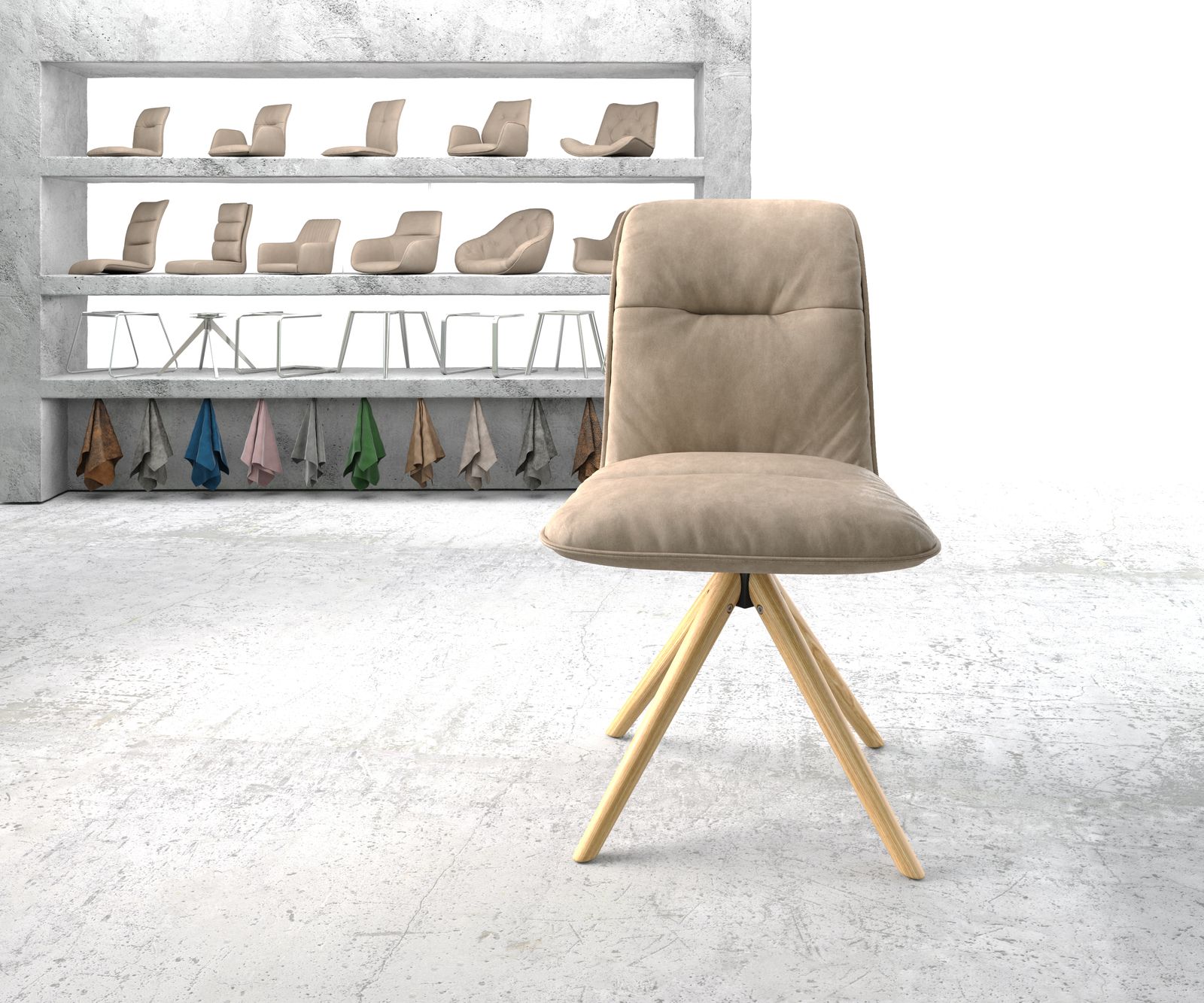 Otočná židle Vinjo-Flex Béžová Vintage mikrovlákno dřevěný rám kónický