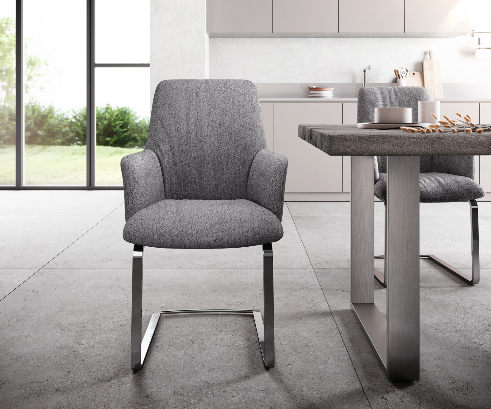 Jídelní židle Willa s područkami s texturovanou látkou světle šedá – systém židlí DELIFE