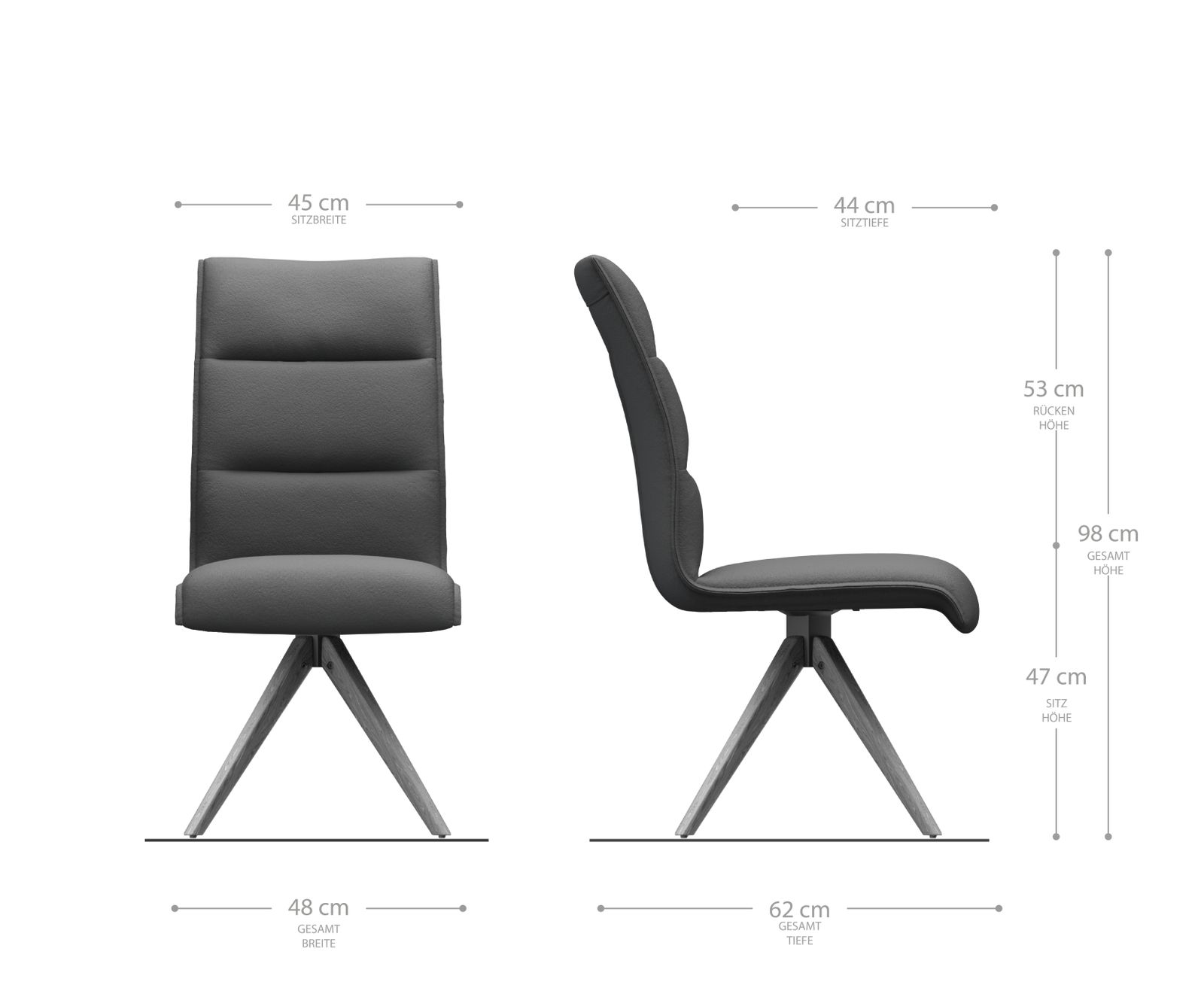 Poutavý křížový rám kombinuje klasický vzhled s přirozenou lehkostí díky čtyřem hranatým nohám. Lze ji otočit až o 180 stupňů a má praktickou funkci zpětného chodu, která vám příjemně usnadní konverzaci u jídelního stolu.