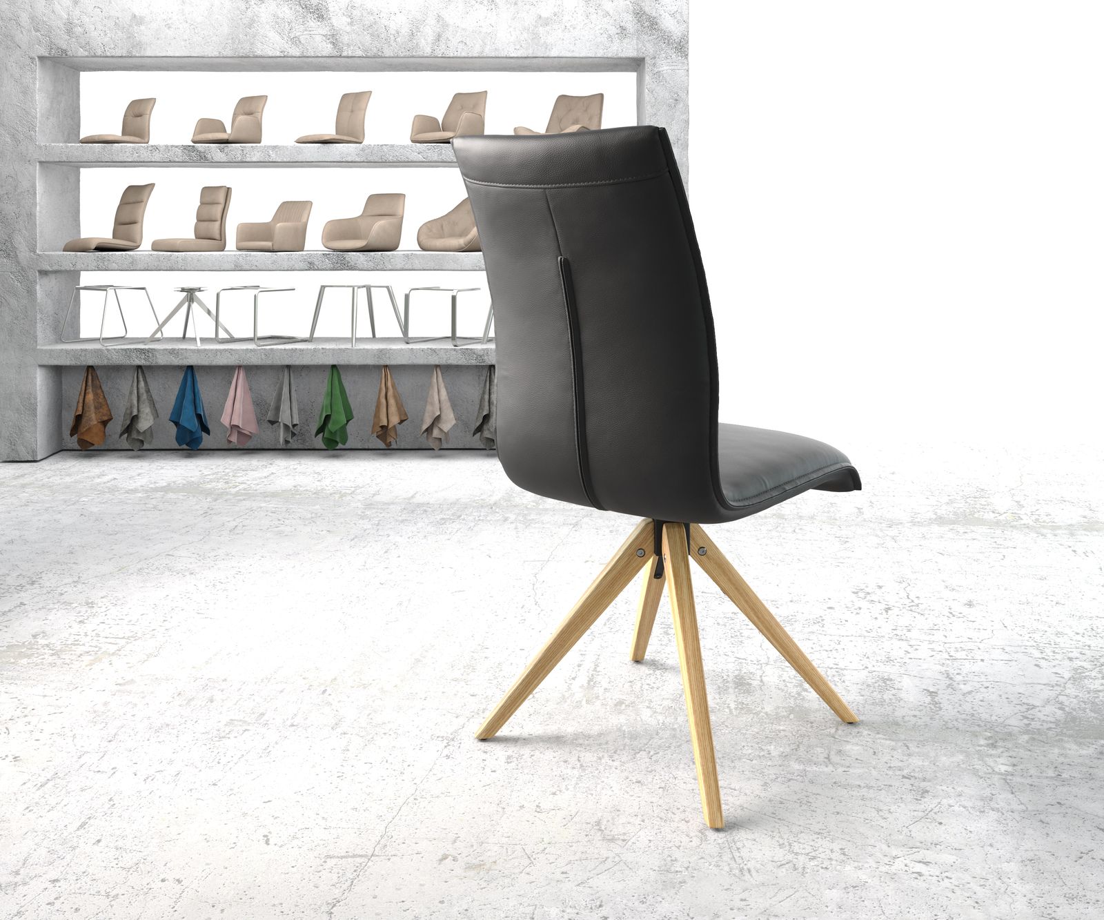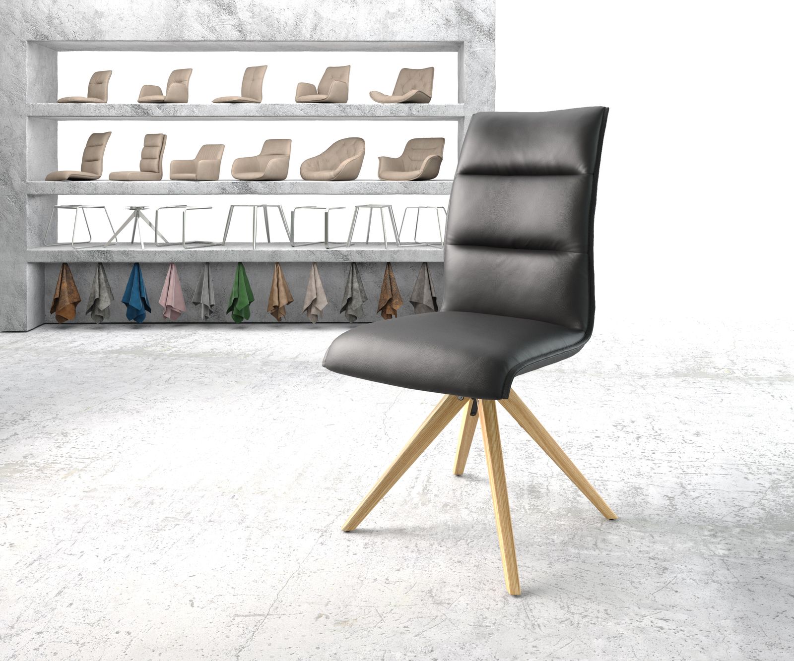 Otočná židle Xantus-Flex Černá Pravá kůže hranatý dřevěný rám