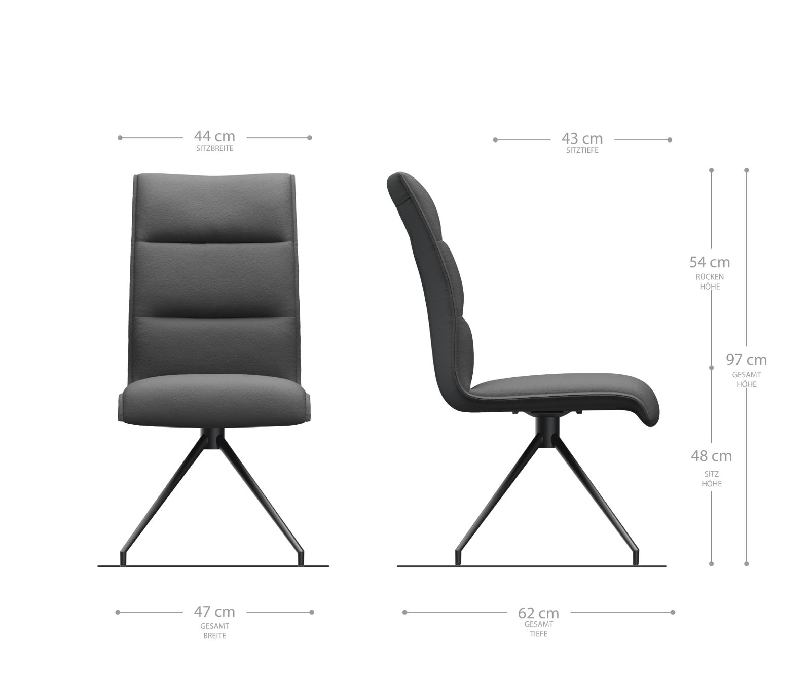 Chytrý křížový rám s praktickou funkcí zpětného chodu zajišťuje nejen mimořádně bezpečnou stabilitu, ale lze jej také otočit až o 180 stupňů. Neocenitelné, když se chcete plně věnovat několika hostům u stolu najednou.