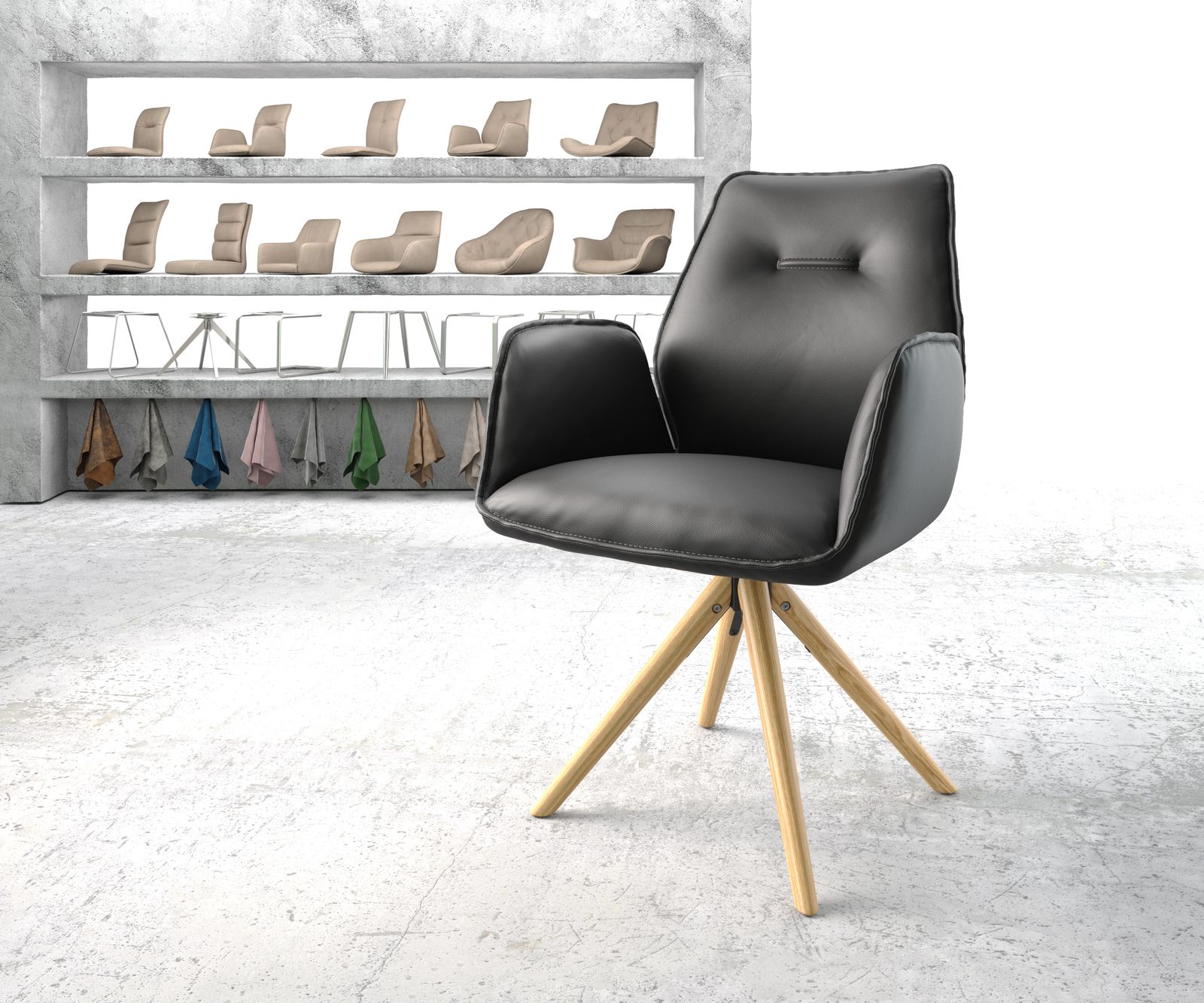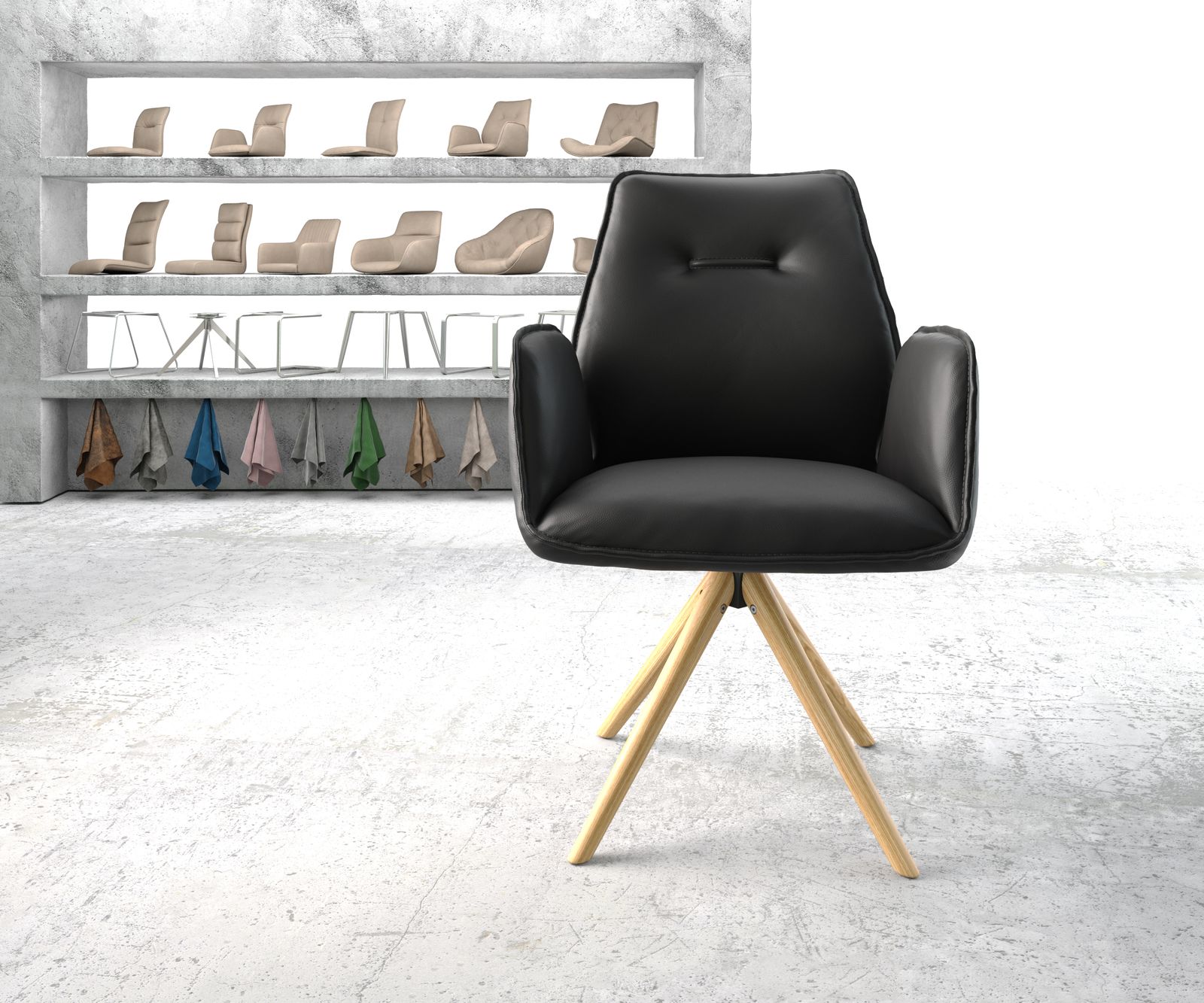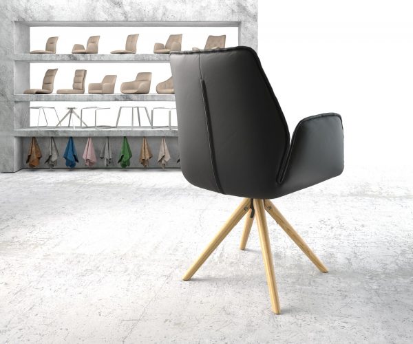 Otočná židle Zoa-Flex černá pravá kůže dřevěná podnož zaoblená otočná
