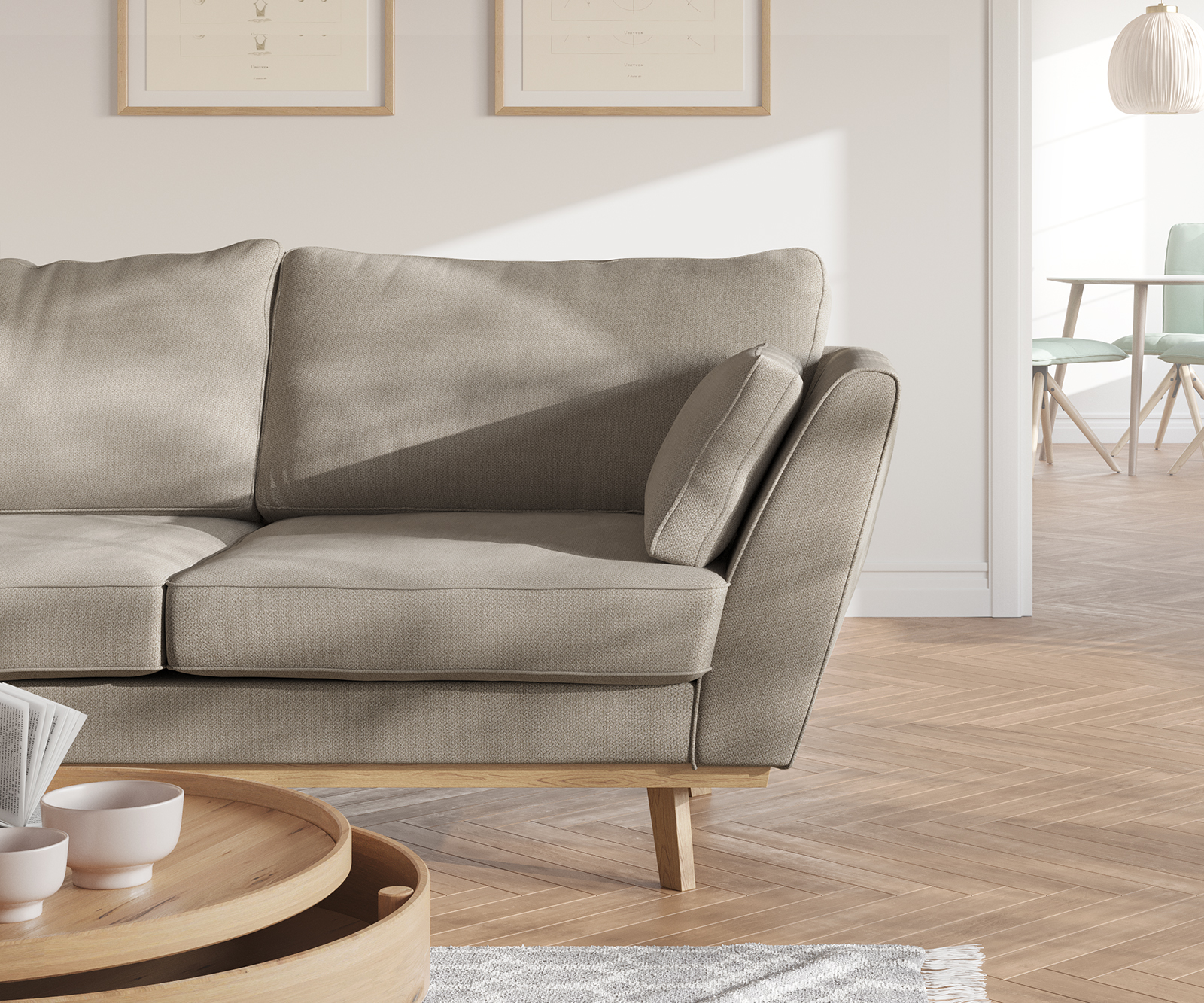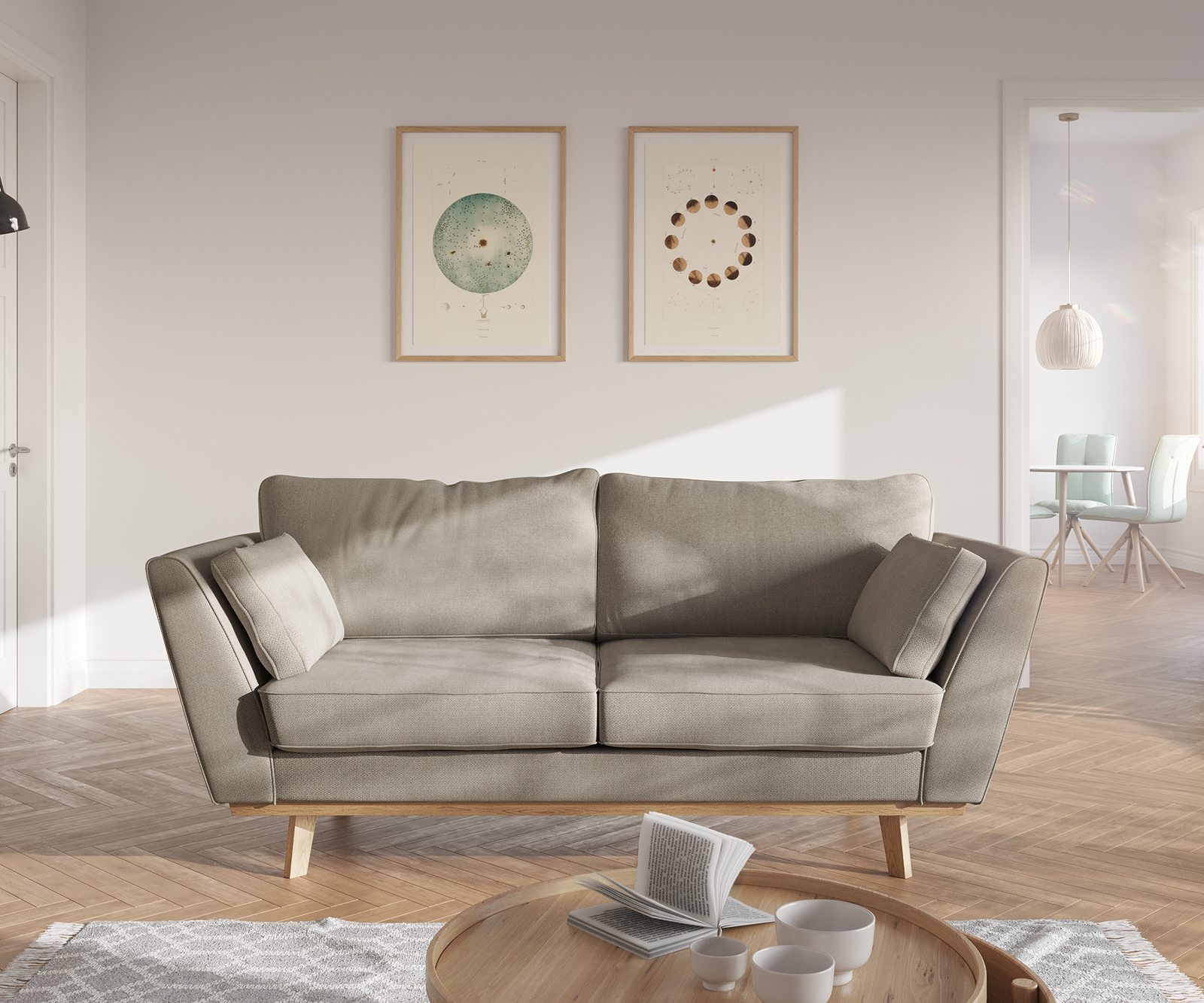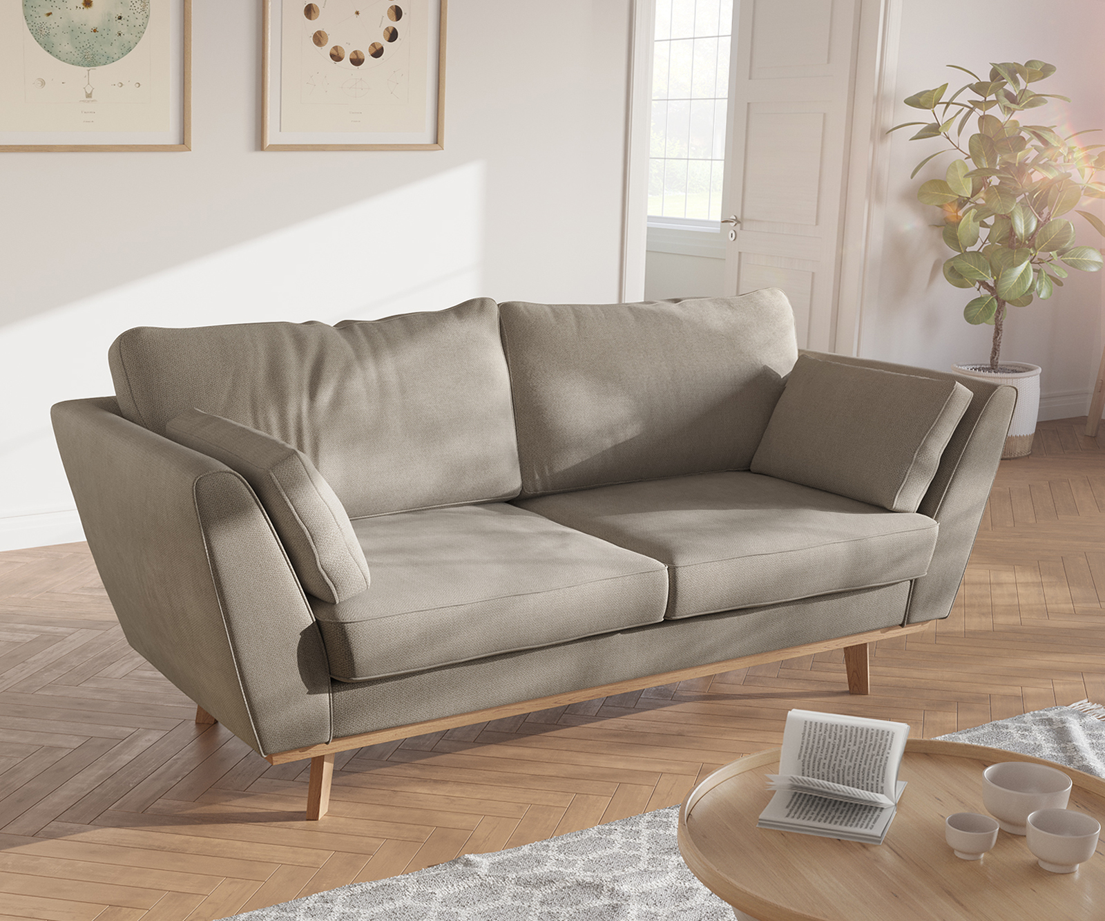 Dvoumístná pohovka Mena – stylový severský styl v nadčasové béžové barvě