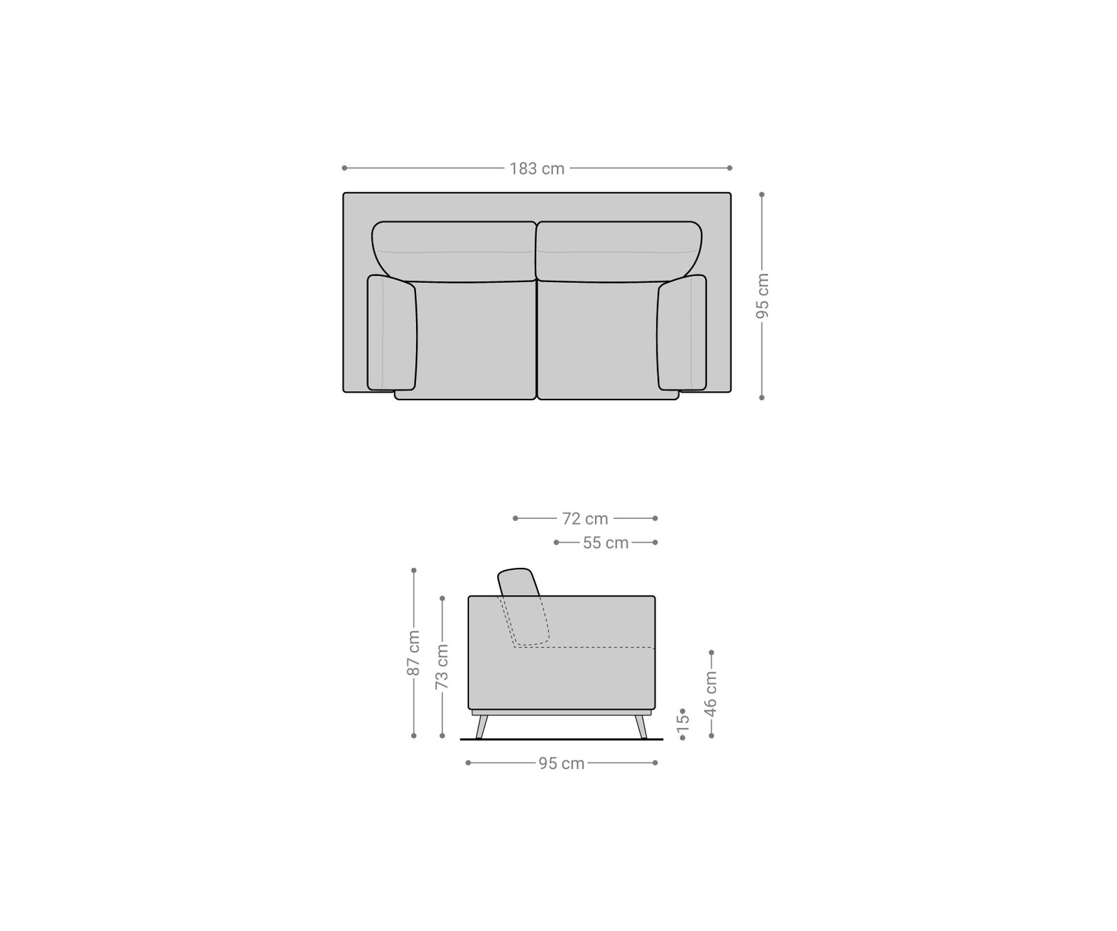 - Přibližné rozměry: Š183 x D95 x V73 cm