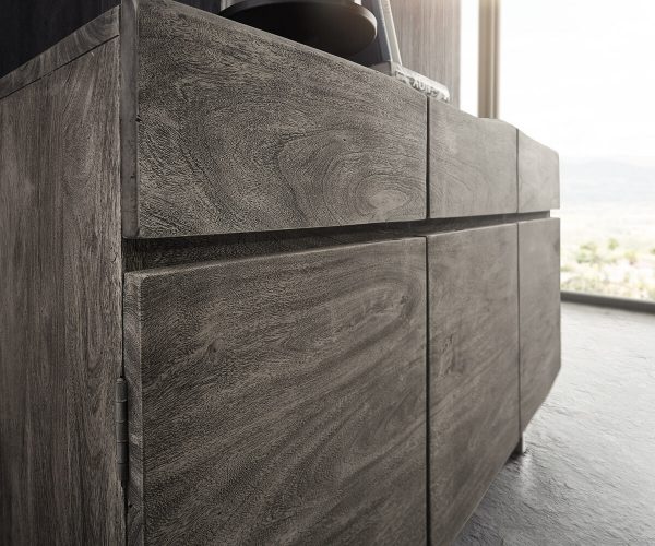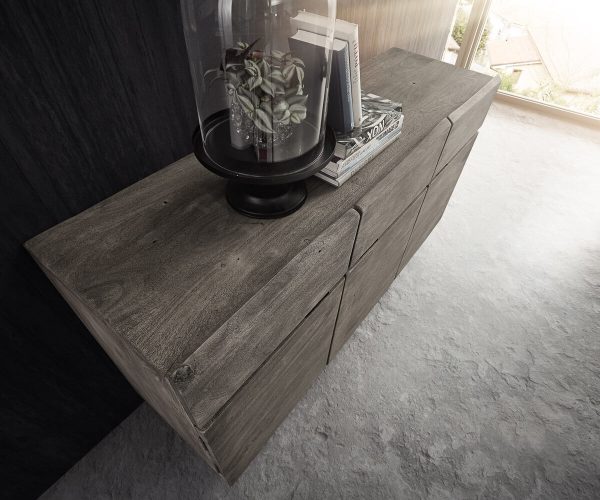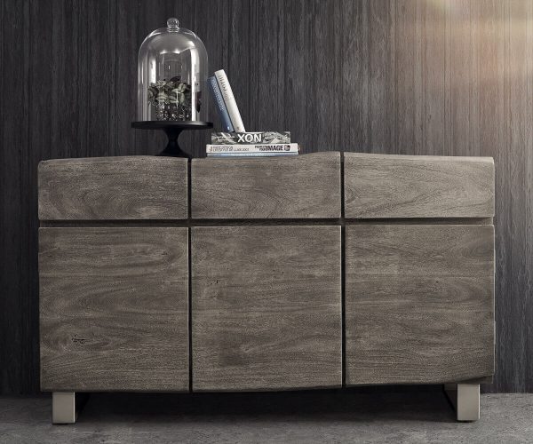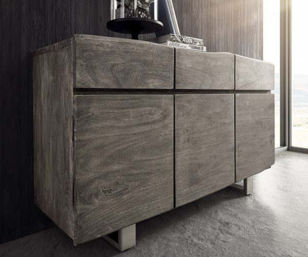 Příborník Live-Edge je kus nábytku z akáciového dřeva, který zaujme zejména rafinovaným designem na přední straně. Komoda stojí na variabilně montovatelných nožkách z nerezové oceli a je vyrobena z akáciového dřeva získaného z plátků stromů; všechny prvky použité na přední straně ukazují přírodní okraj stromu. Dřevo, které má přirozené vlastnosti materiálu, představuje velmi rozmanitou kresbu a má také typické nepravidelnosti. Skříňka zaujme také svým jedinečným povrchem, který je v několika krocích pečlivě ručně opracován. Vzhledem k tomu, že struktura dřeva a hrana stromu nejsou nikdy na žádném kusu nábytku stejné, je každá komoda vzrušujícím a jedinečným kusem.
