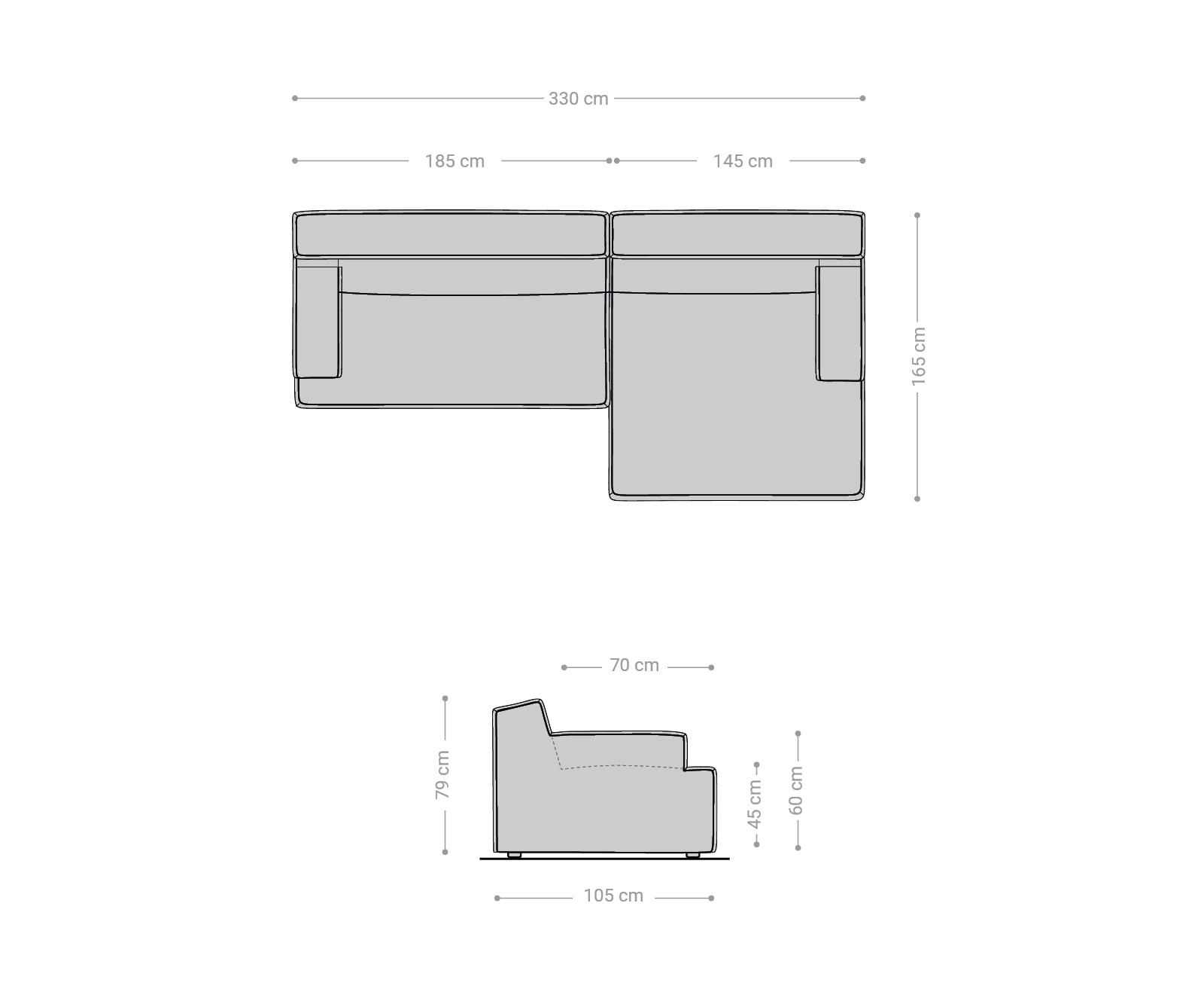• Přibližné rozměry: Š330 x D166 x V79 cm