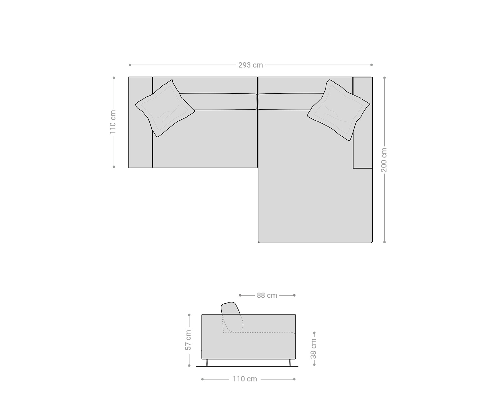 - Přibližné rozměry: Š294 x D203 x V77 cm