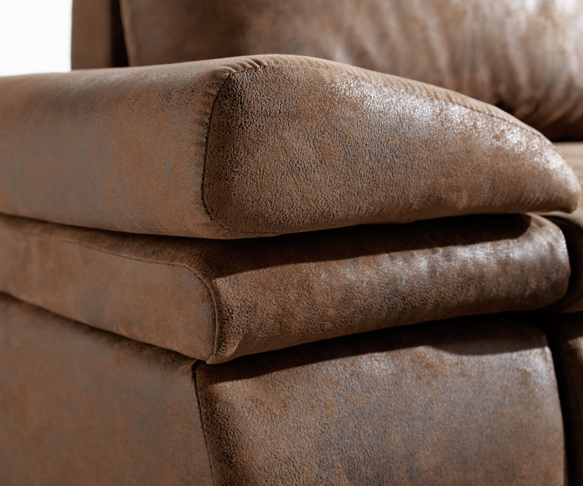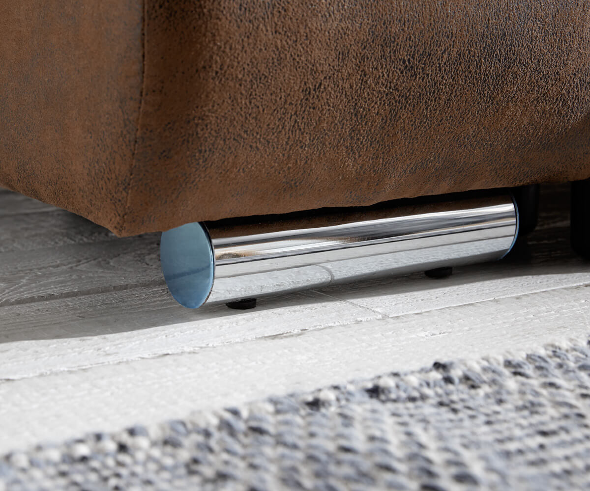 Rohová sedací souprava Gitano zaujme svým elegantně zaobleným designem a přesvědčí svou přitažlivou flexibilitou. Díky variabilně montovatelnému otomanu můžete rohovou pohovku začlenit do svého obývacího pokoje jakýmkoli způsobem. Sezení a ležení na pohovce ve tvaru písmene L je rozhodně zábavné, protože kvalitní čalounění je podepřeno vlnovcovým pružením. Rohová pohovka navíc vybízí k delšímu pobytu díky robustnímu potahu v hnědém vintage vzhledu .
