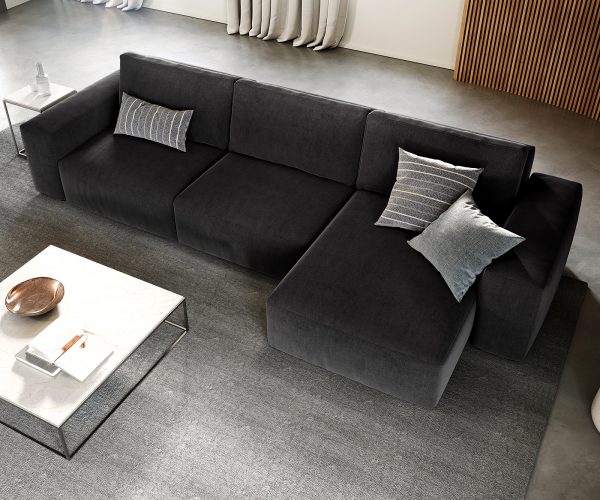 Dechberoucí útulnost – rohová pohovka Lanzo v elegantní černé barvě