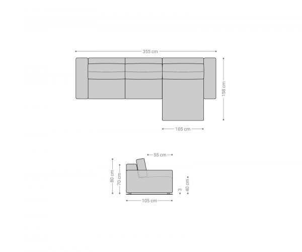 • Přibližné rozměry: Š355 x D156 x V70 cm