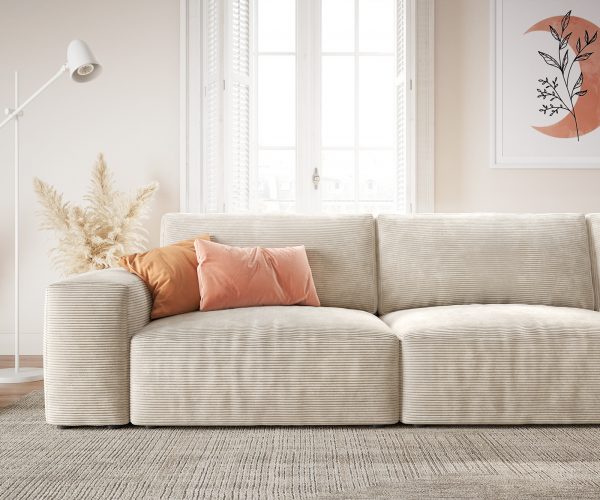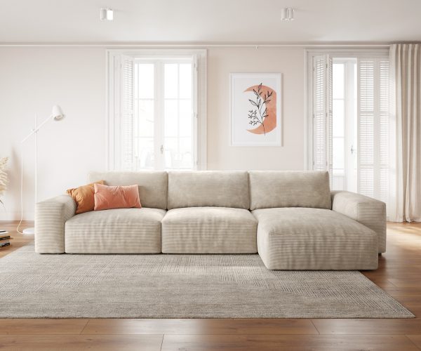 Prostorná rohová pohovka byla zabalena do módní, obzvláště příjemné manšestrové látky a její teplý béžový tón vytváří příjemnou a přátelskou atmosféru. Lze ji sestavit různými způsoby a snadno se přizpůsobí situaci ve vašem pokoji. Měkké čalounění s kvalitním pružením dělají z Lanza útulnou pohovku o třídu lepší a absolutní středobod vaší domácnosti.