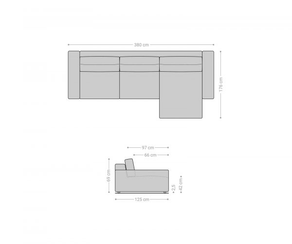 • Přibližné rozměry: Š380 x D176 x V69 cm
