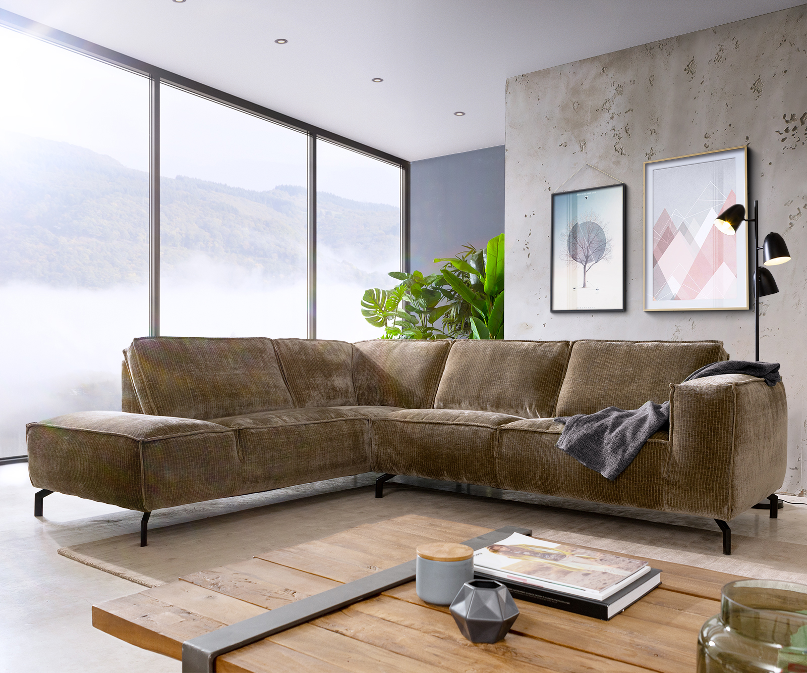 Vizuálním vrcholem, kterým se rohová pohovka od DELIFE prezentuje, jsou nohy. Díky svému filigránskému tvaru získáte vzhled bez podlahy, který působí bezstarostně a moderně. Kovové nožky svým černým zbarvením opticky kontrastují s krásným blátivým potahem pohovky . Mimořádně pohodlné čalounění se vyznačuje velmi měkkým povrchem, který se přizpůsobí tvaru vašeho těla a vy se budete cítit, jako byste seděli na obláčcích.