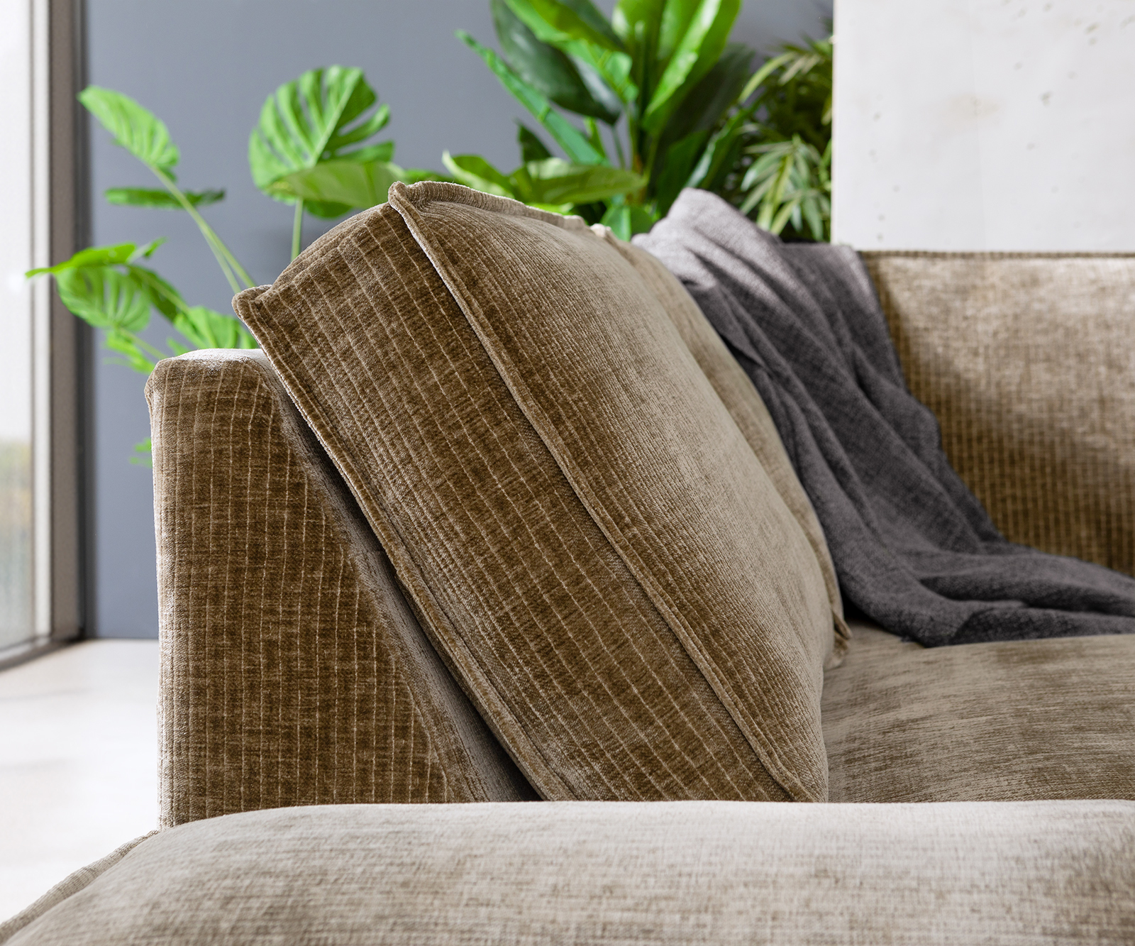 - Struktura čalounění sedáku: vysoce kvalitní pěna a struktura polštáře se směsí peří a silikonových vláken
