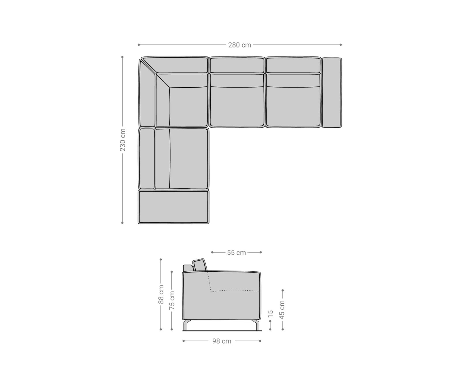 - Přibližné rozměry: B286 x D230 x V85 cm