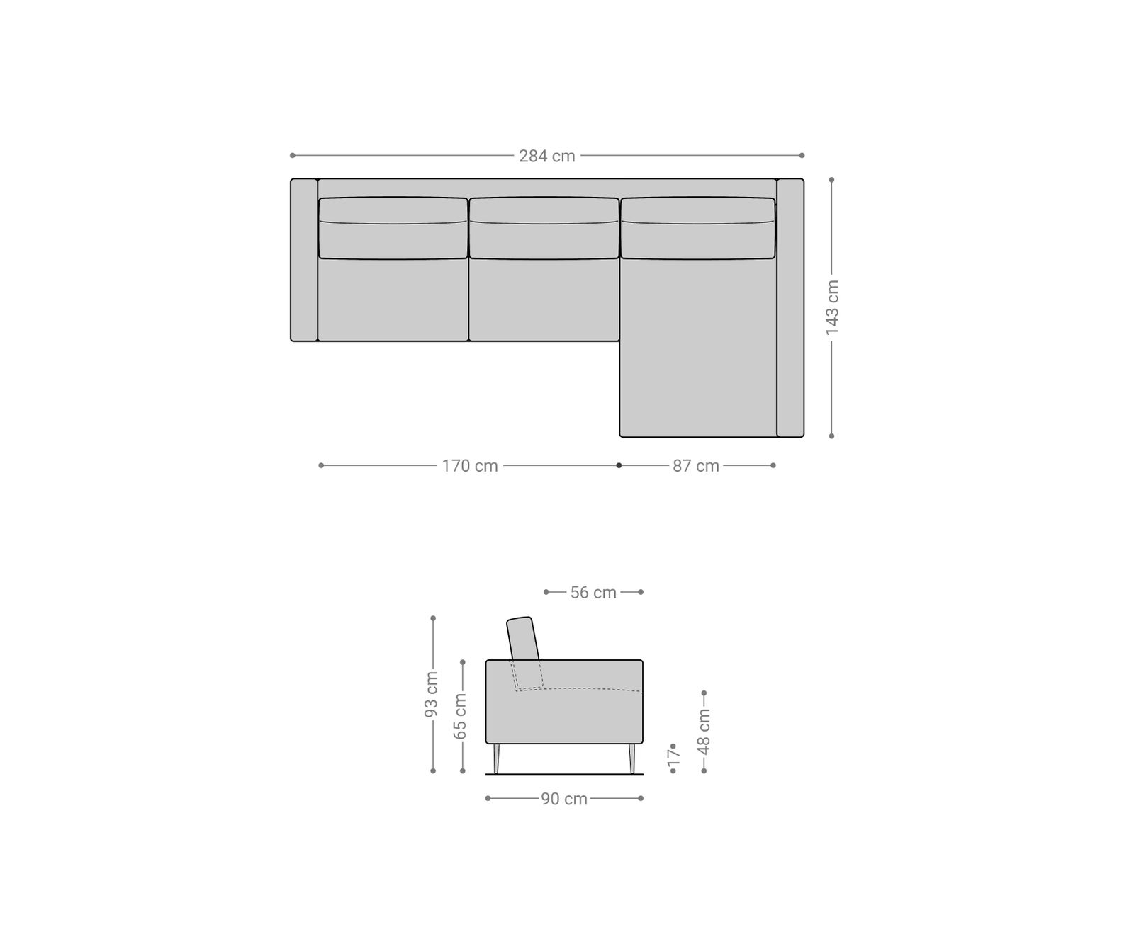 • Přibližné rozměry: Š284 x D143 x V93 cm