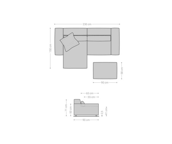 • Méretek kb.: Sz230 x Mé150 x M71 cm
