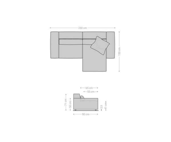 - Méretek kb.: Sz230 x Mé150 x M71 cm