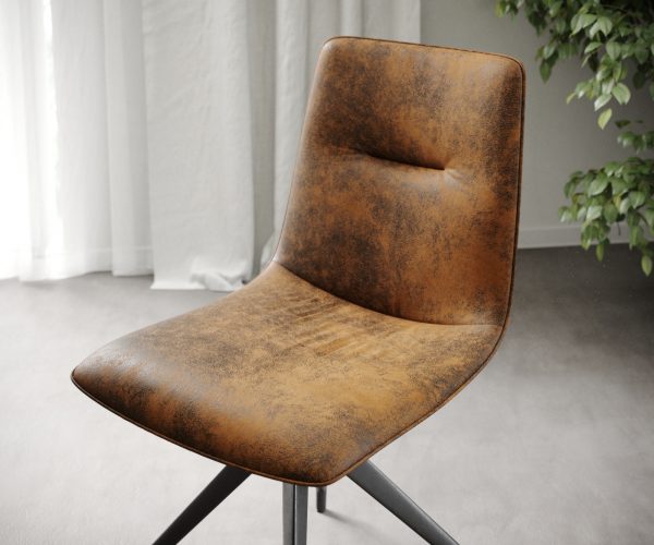 Hnědá látka z mikrovlákna, kterou byly židle čalouněny, fascinuje svým módním vintage vzhledem. Látka se mimořádně snadno čistí a lze ji snadno kombinovat s jinými barvami.
